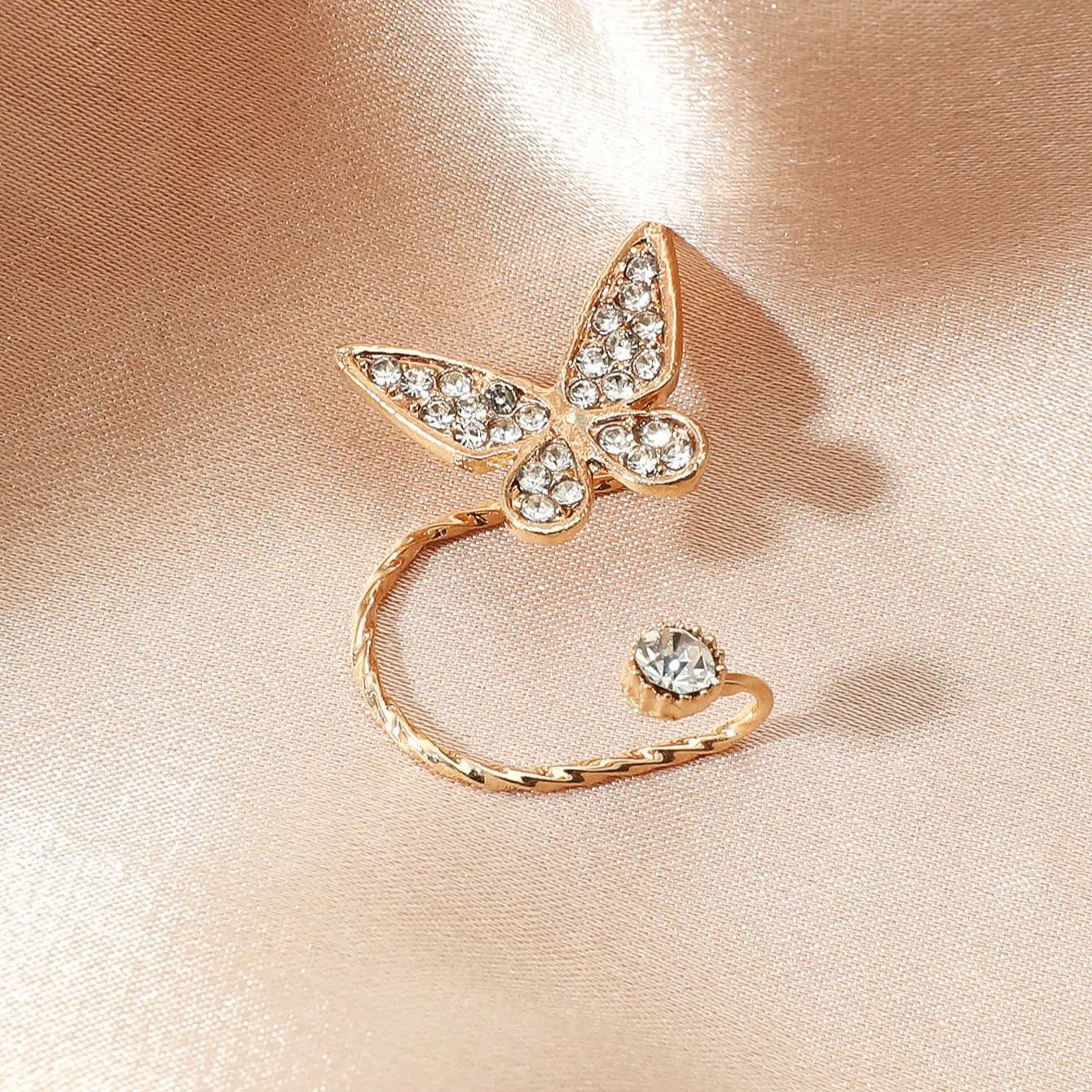 1 Piece Romantic Style Golden Butterfly Rhinestone Ear Clip Earrings Women Girl