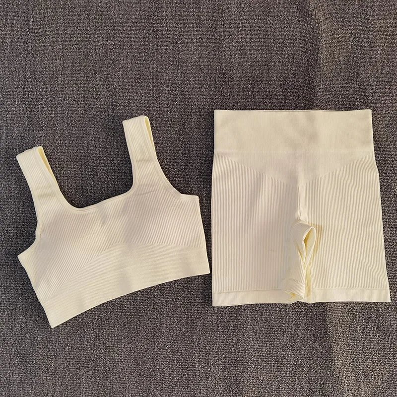 2 PCS Women Sporstwear Seamless Yoga Set Sport Bra with High Waist Shorts Gym Clothing Fitness Sleeveless Tracksuit