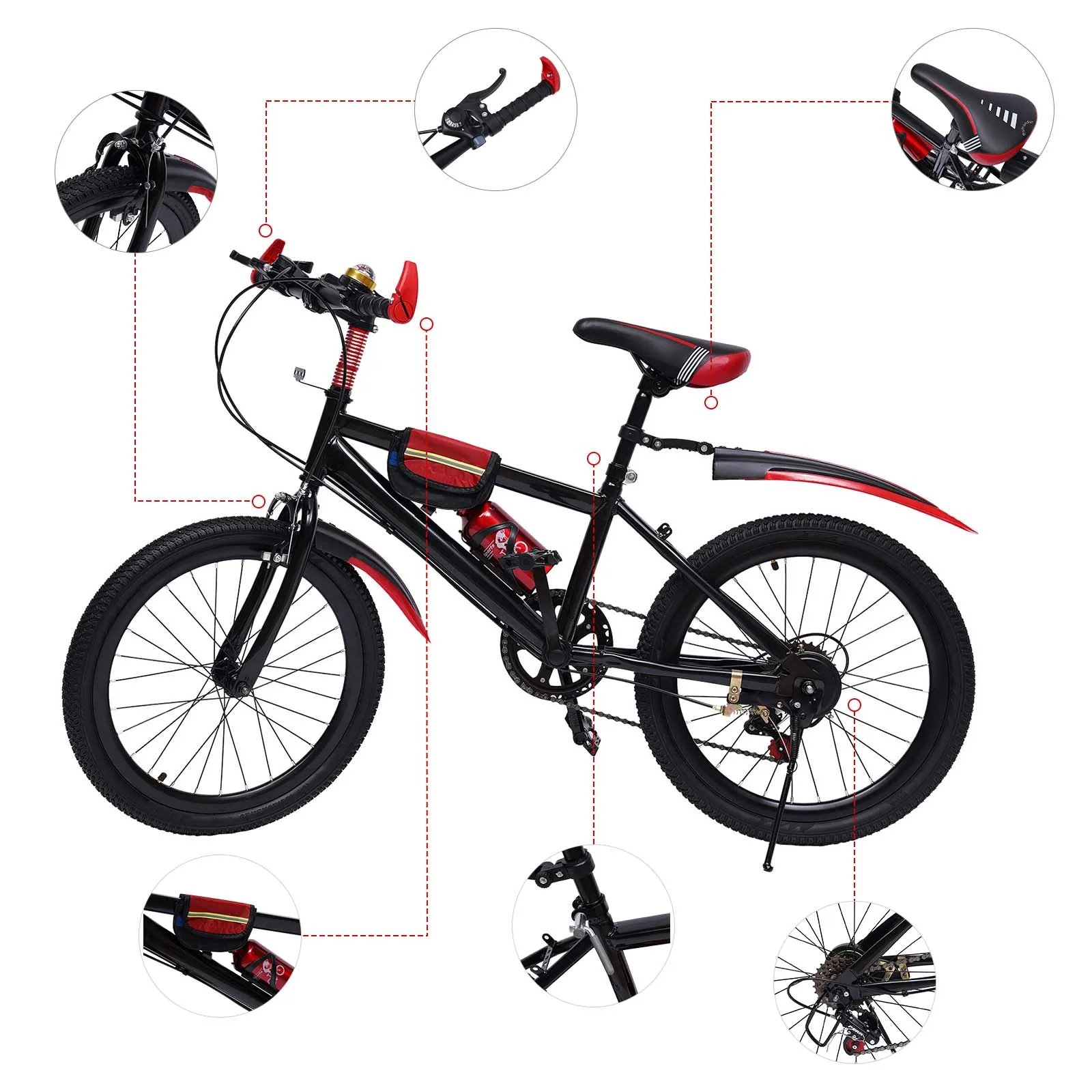 20 Inch Mountain Bike Front and Rear Dual Brake Bicycles with Adjustable Seat Height 7 Speed Shifters Fenders Water BottleCompas
