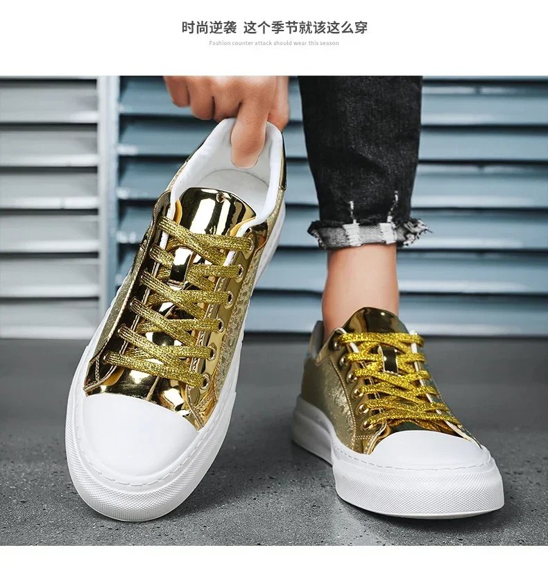 Luxury Gold Sneakers Men Fashion Skulls Casual Skateboard Shoes Men Designer