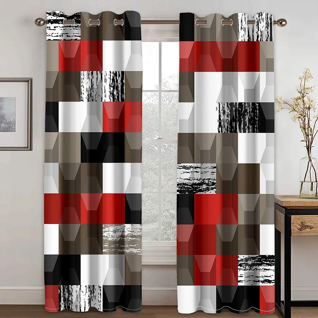 270*240 Cheap Abstract Geometric Black Red Modern Thin Two Windows Curtains for Living Room Bedroom Kitchen Office Decor 2Pieces