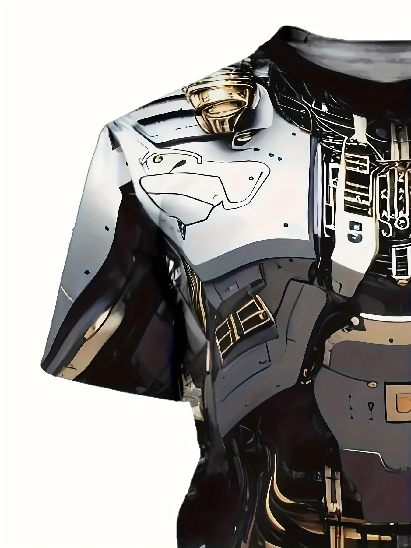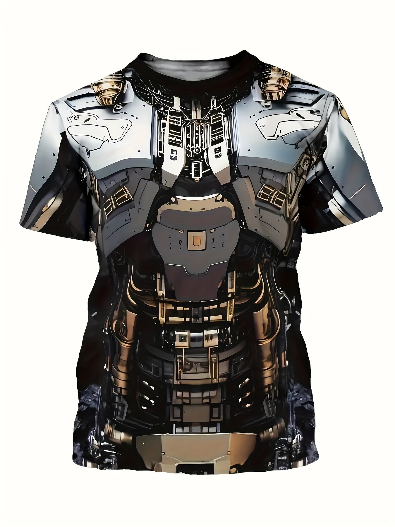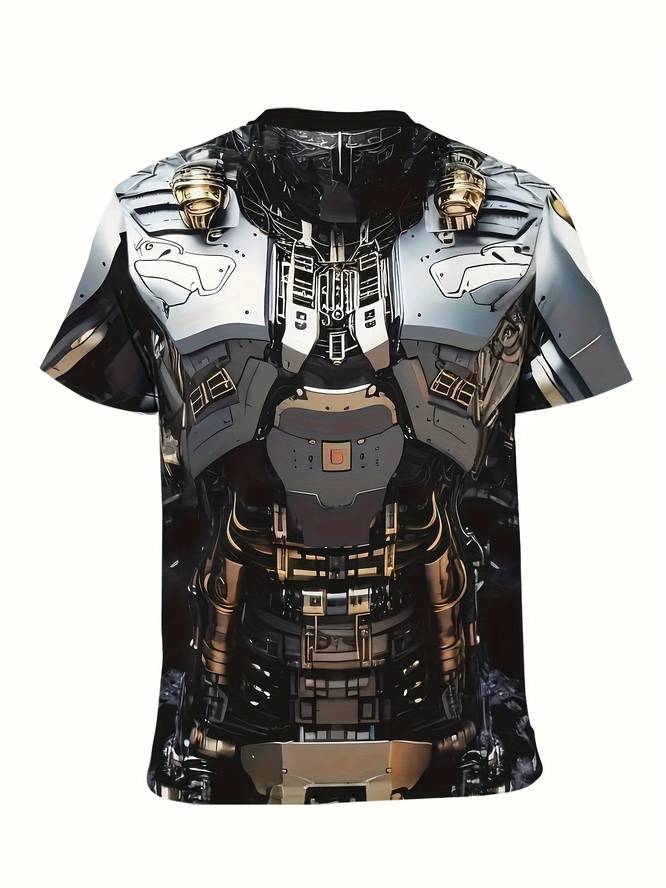 3D Digital Mechanic Style Robot Body Pattern Crew Neck And Short Sleeve T-shirt