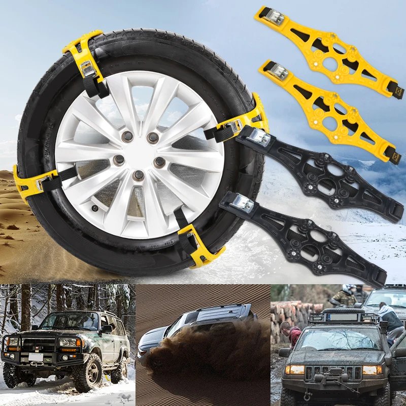 4PCS/Set Winter Car Snow Tire Anti-Skid Wheel Chains Belt Strap Adjustable Vehicle Auto Anti Slip Tyre Chains For Mud Snow