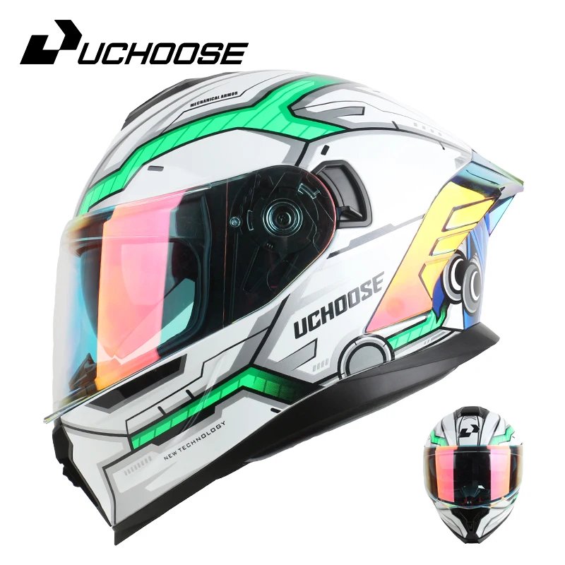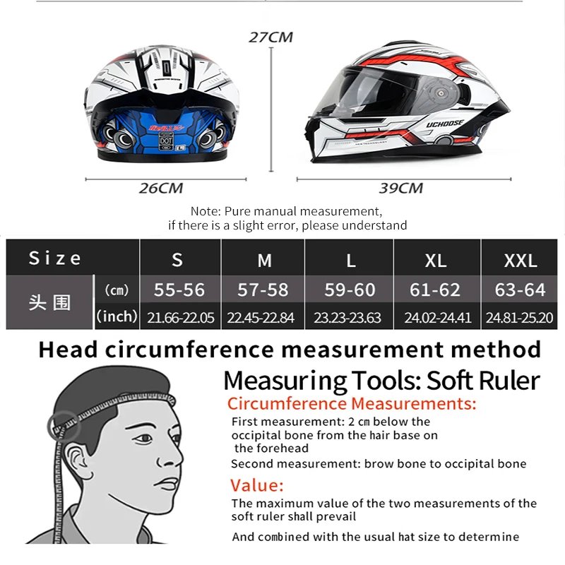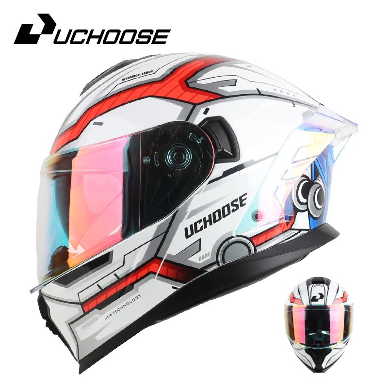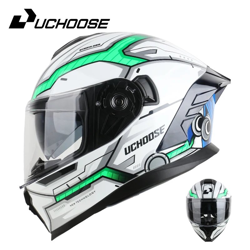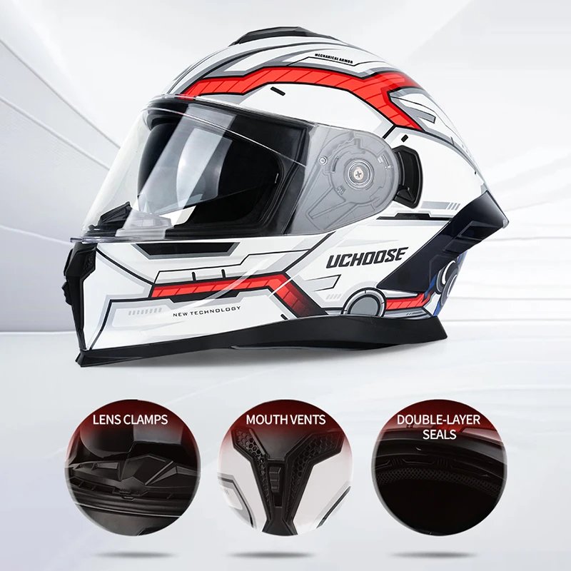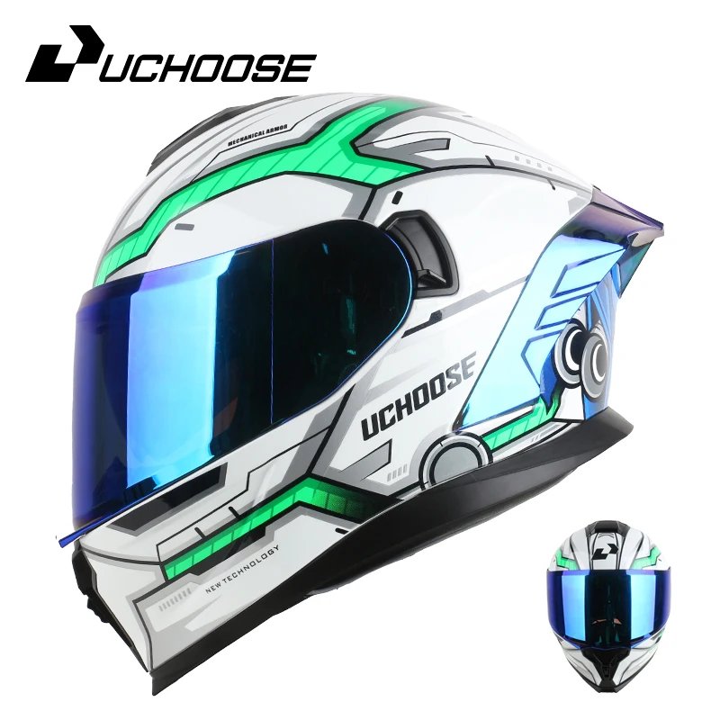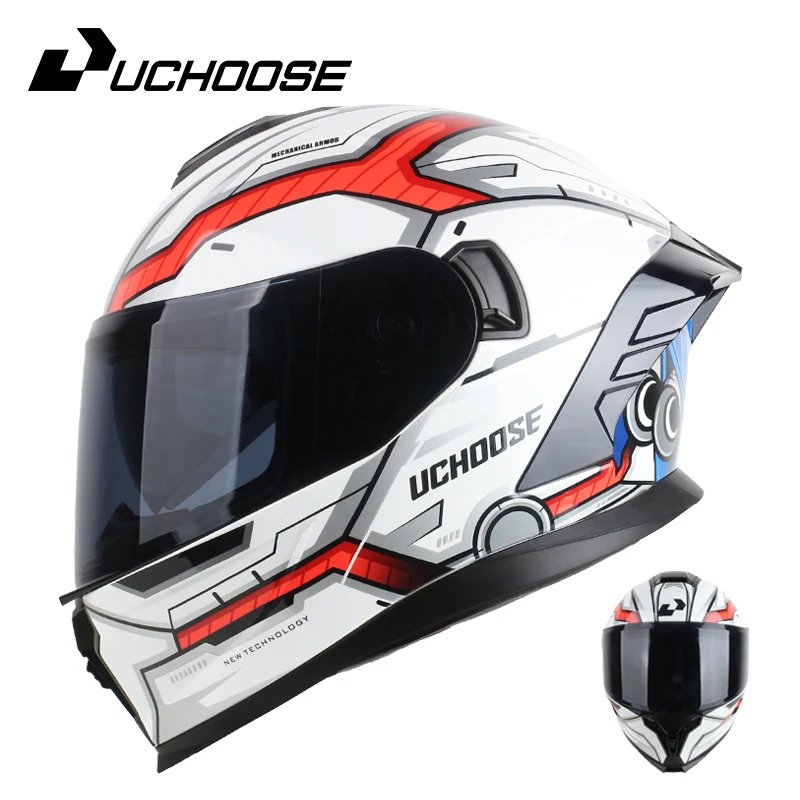 818 Uchoose DOT Approved Full Face Helmet Crash Motorbike Protective Gear Men Women Motorcycle Double Sun Visor