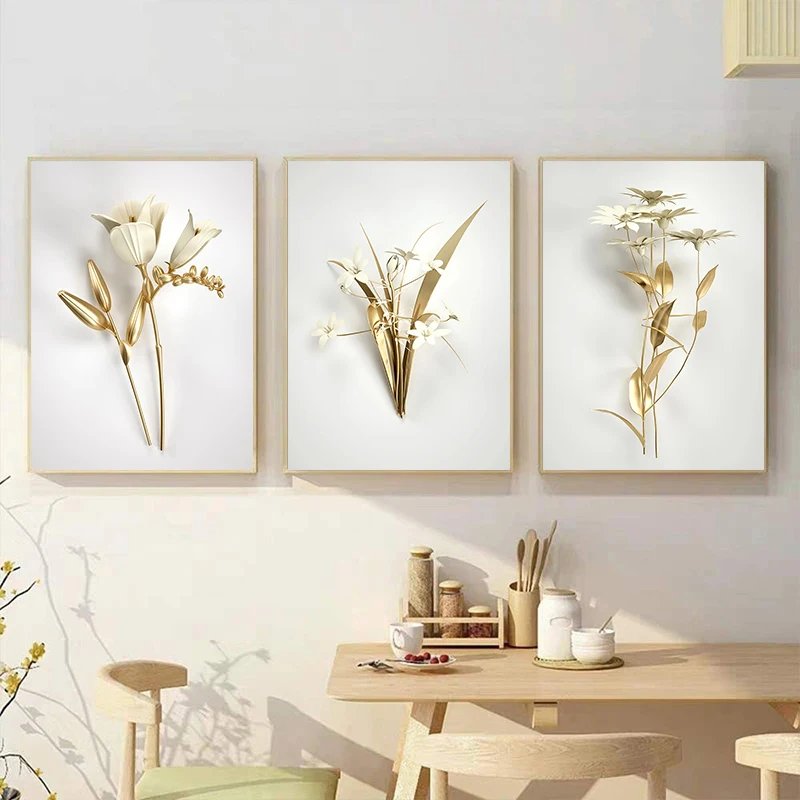 Abstract Golden Flower Home Decor Luxury Picture Canvas Painting Wall Art Posters and Prints for Nordic Living Room Art Design