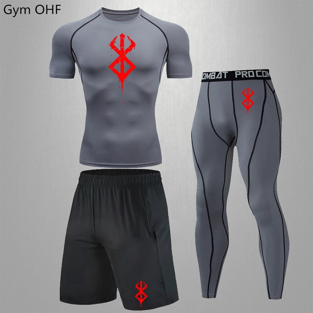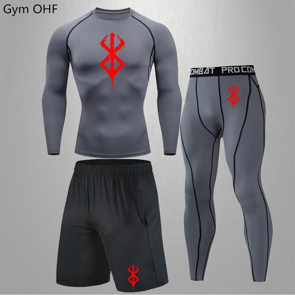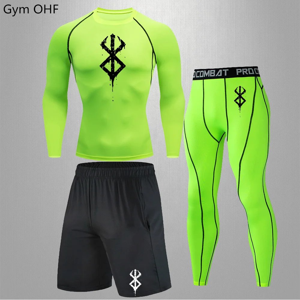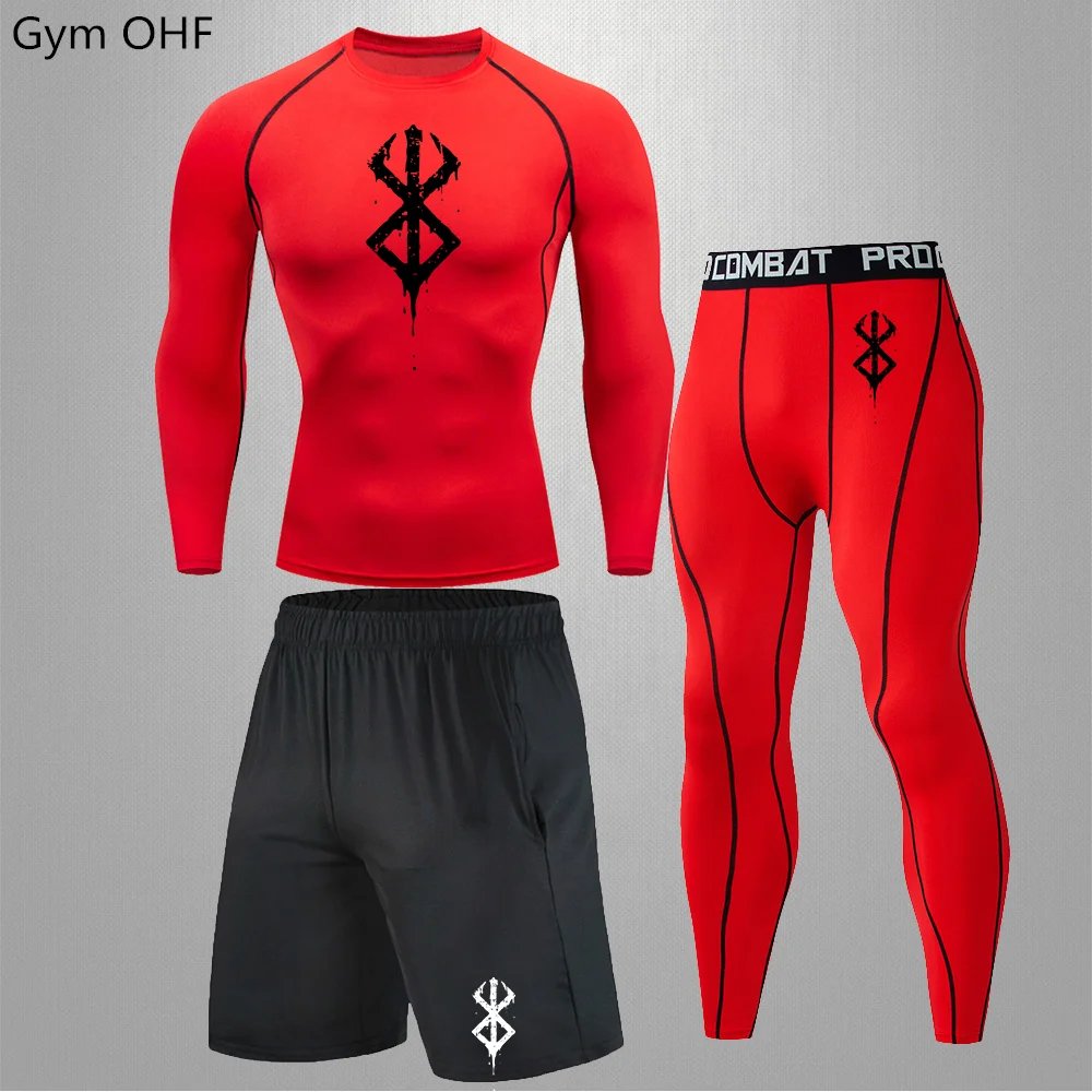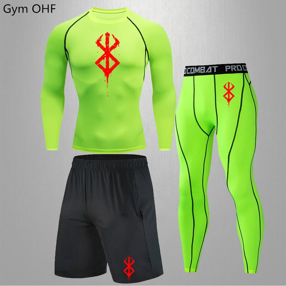 Anime Print New Men Sportswear Compression Suits Quick Dry Rashguard Sport Joggers Training Gym Fitness Running Tracksuits