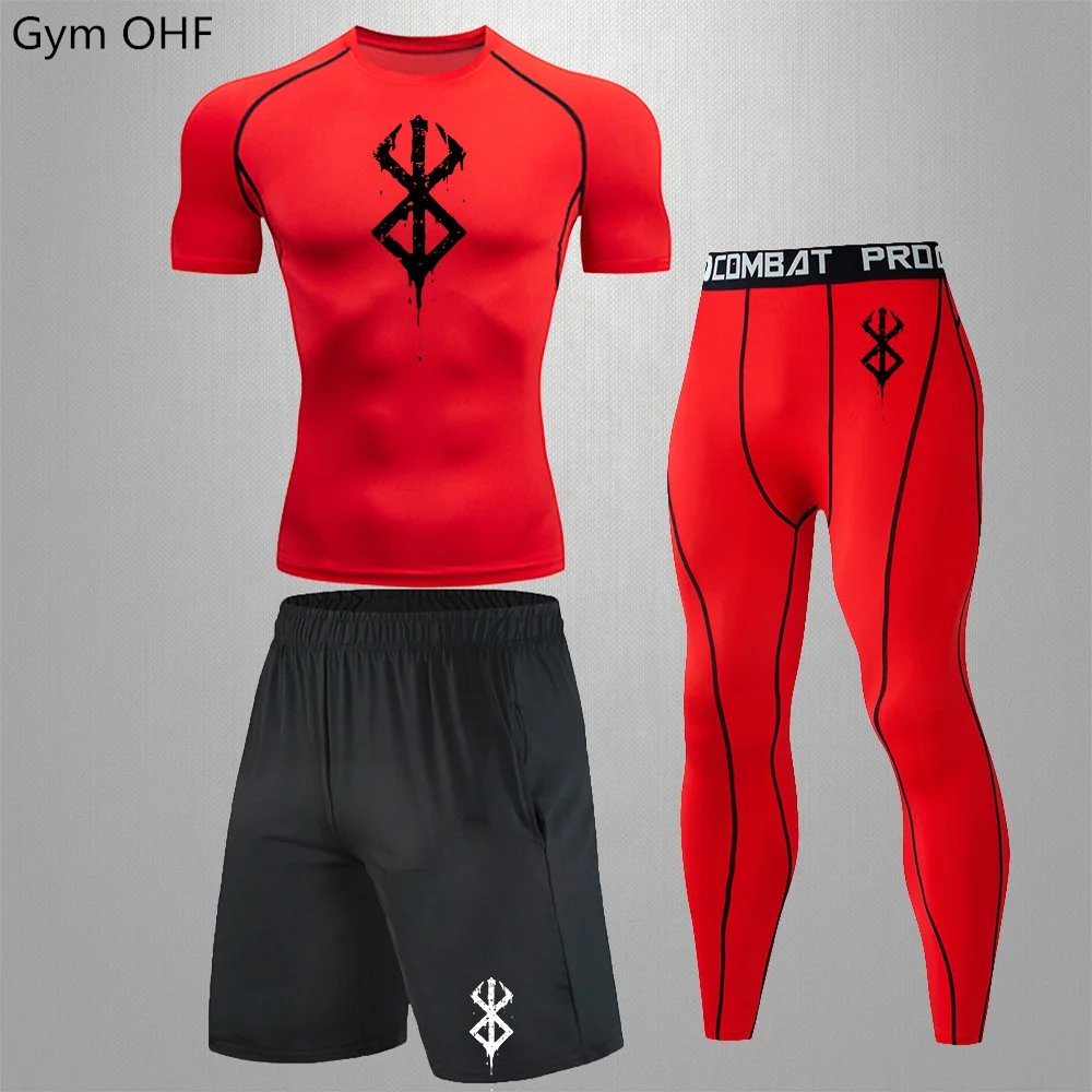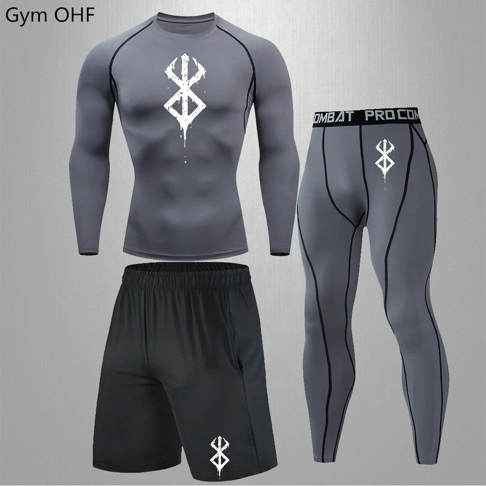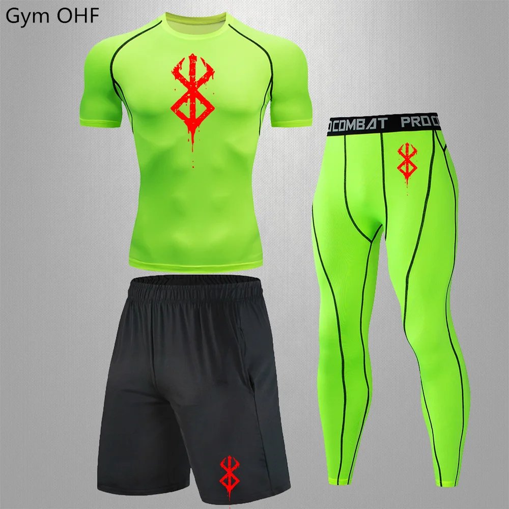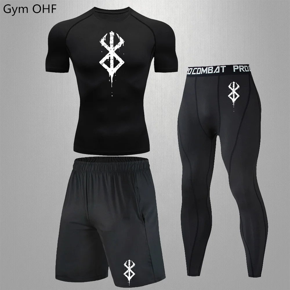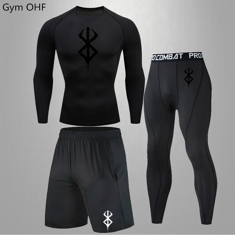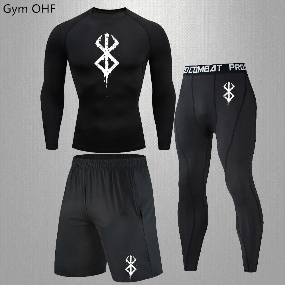 Anime Print New Men Sportswear Compression Suits Quick Dry Rashguard Sport Joggers Training Gym Fitness Running Tracksuits