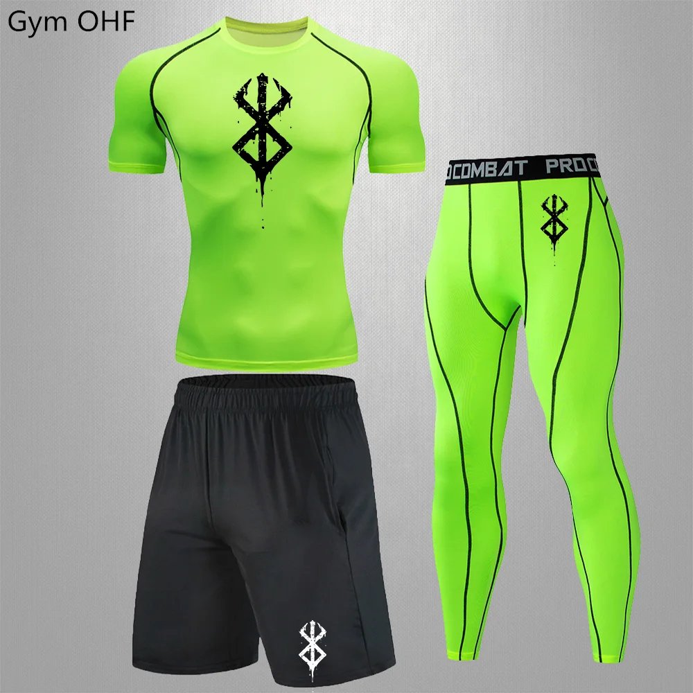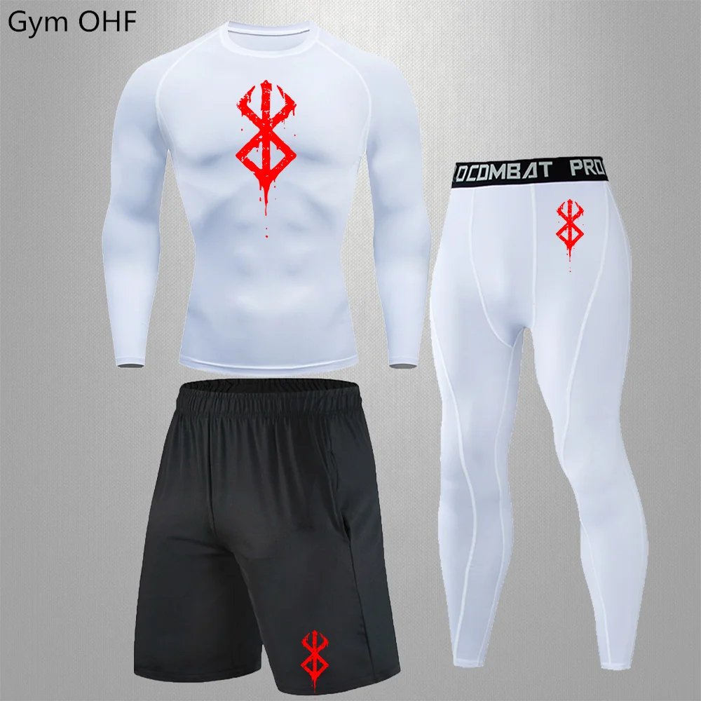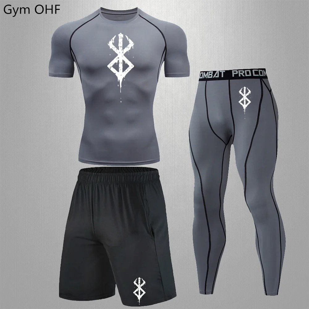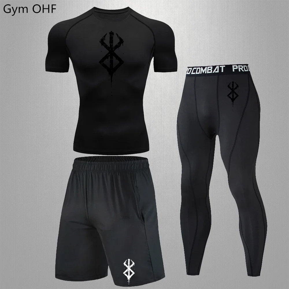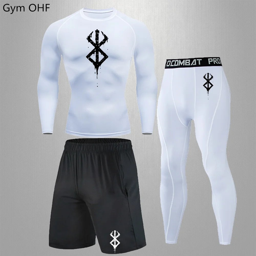 Anime Print New Men Sportswear Compression Suits Quick Dry Rashguard Sport Joggers Training Gym Fitness Running Tracksuits