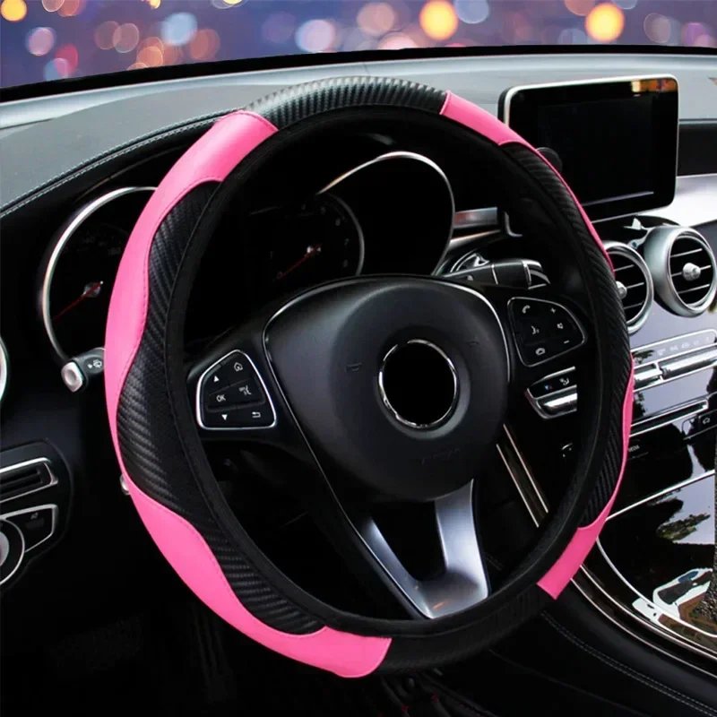 Car 37-38.5cm Steering Wheel Cover Breathable Anti Slip PU Leather Steering Covers Suitable Auto Decoration Carbon Fiber
