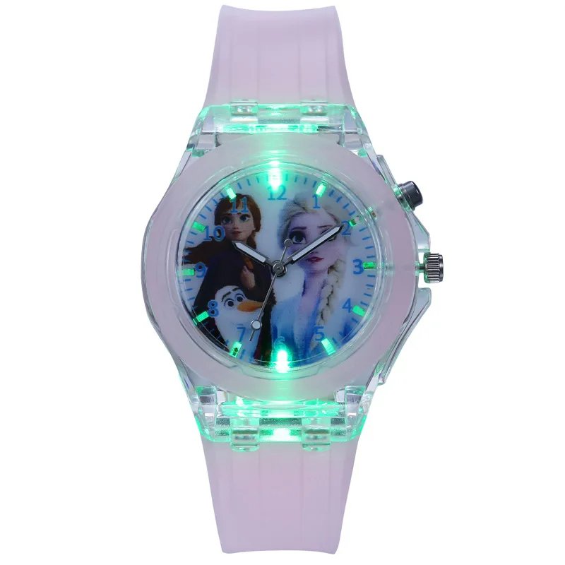Disney Frozen Princess Elsa Led Kids Watch Figure Toys Fashion Cartoon Luminous Watch Student Birthday Toys Christmas Gift