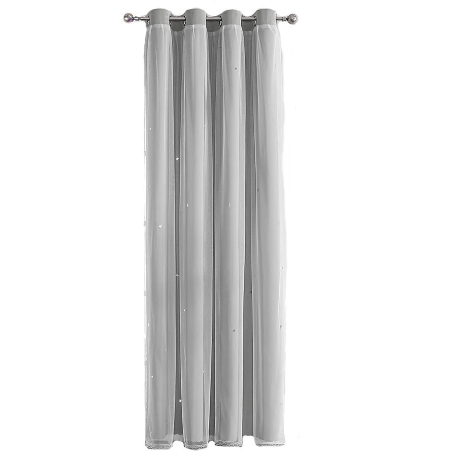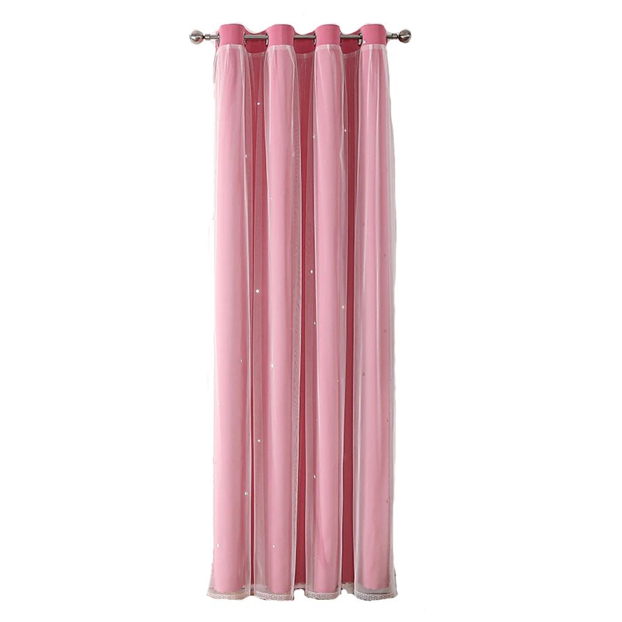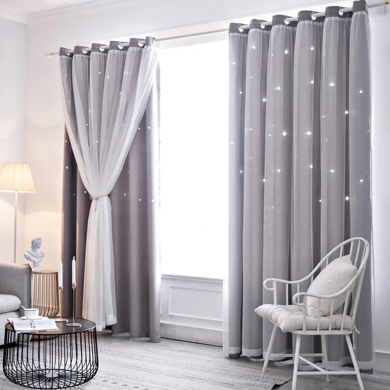 Double Layers Romantic Sheer Kids Children Girls Curtains With Hollow Out Stars For Living Room Bedroom Windows Drapes