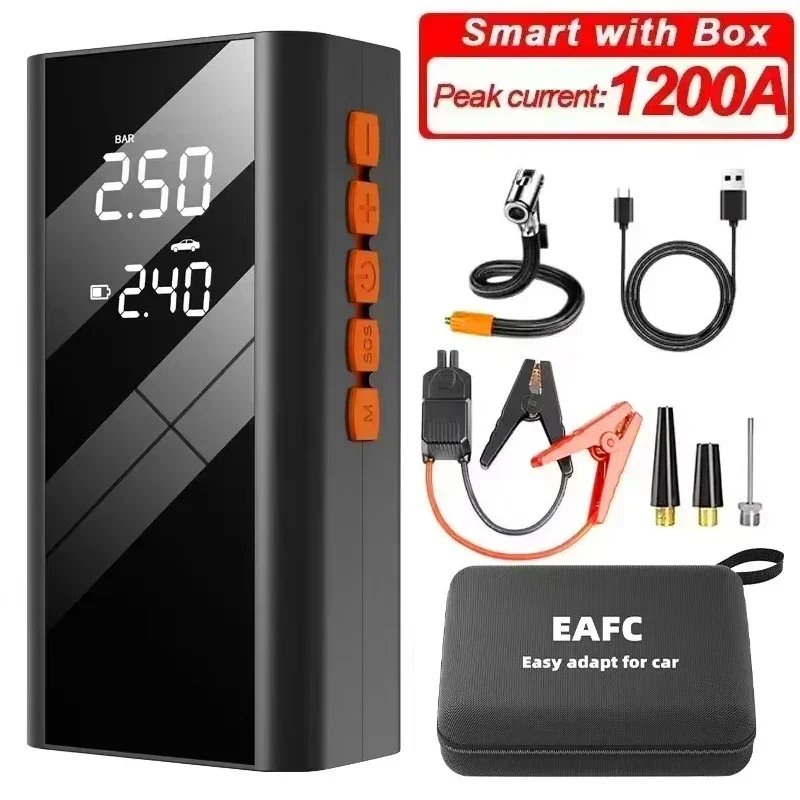 EAFC Car Jump Starter &Air Pump Car Battery 1200A Emergency Boosters 12V Power Bank Starting Device Starter 150PSI Tyre Inflator