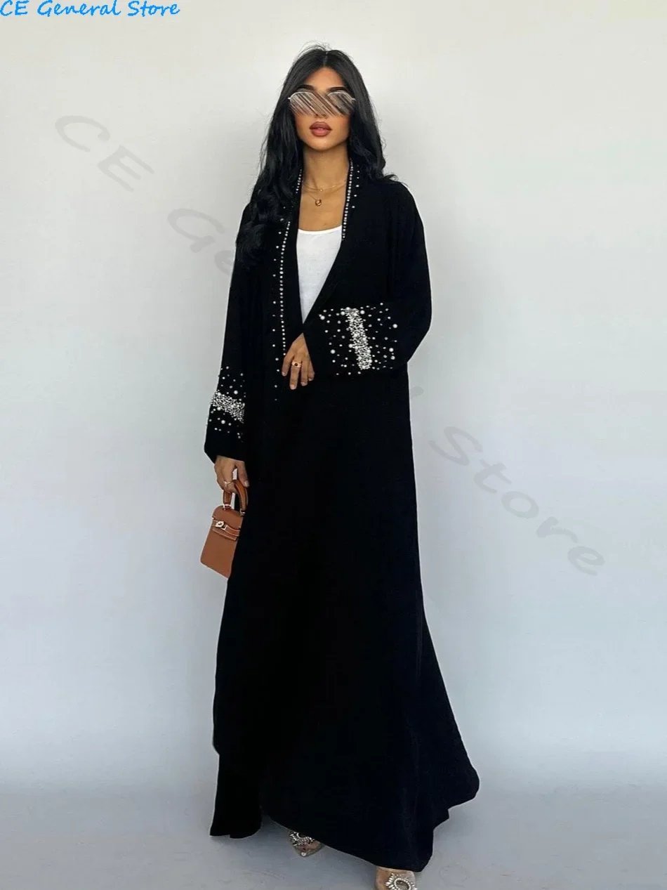 Eid Muslim Diamond Pearls Abaya for Women with Scarf Abayas Jalabiya Party Dresses Dubai Kaftan Vestidos Largos Long Robe 2024