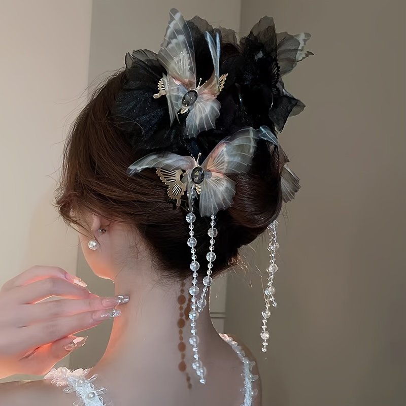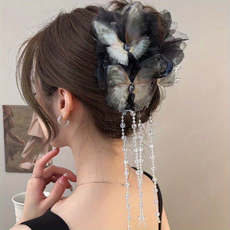 Elegant Black Butterfly Tassel Hair Claw – Large, Sweet Acrylic Hair Accessory