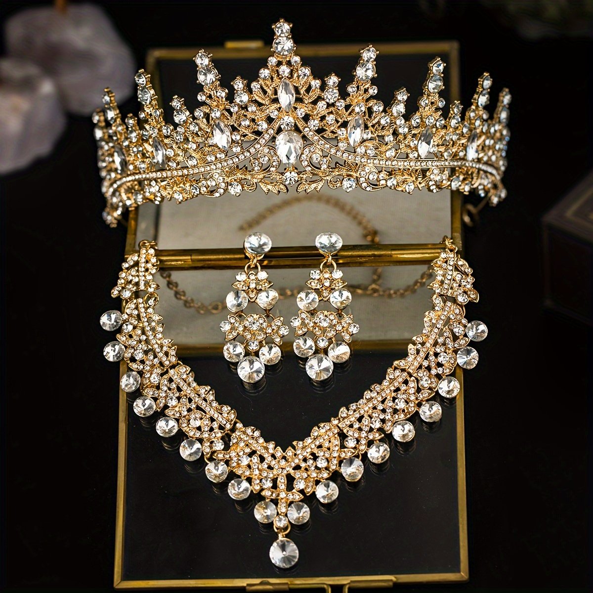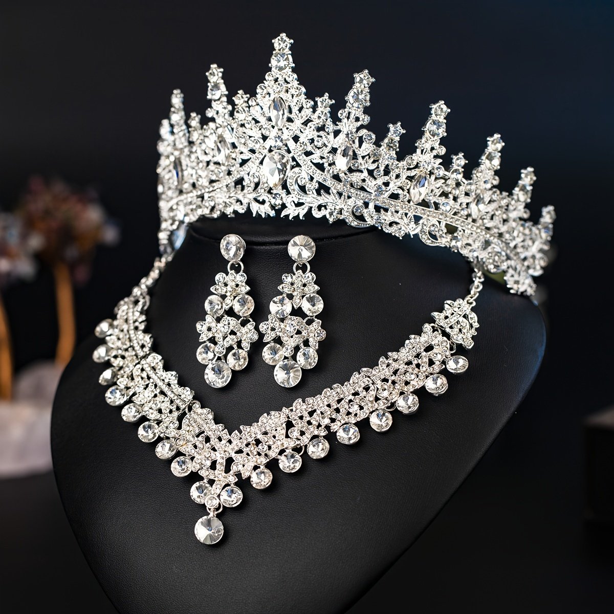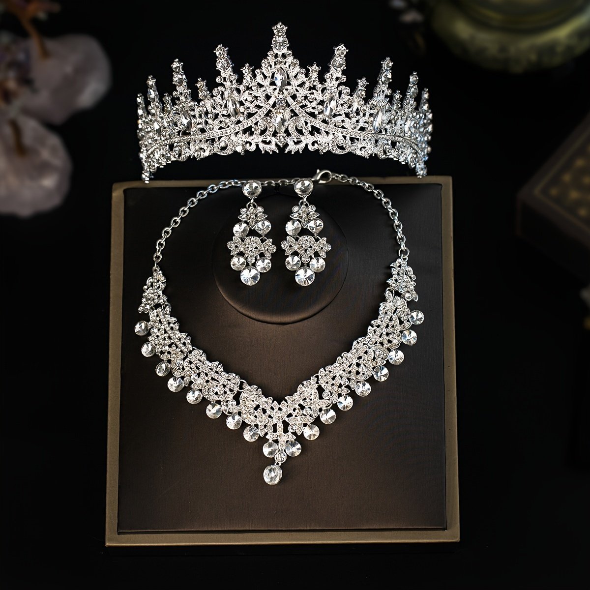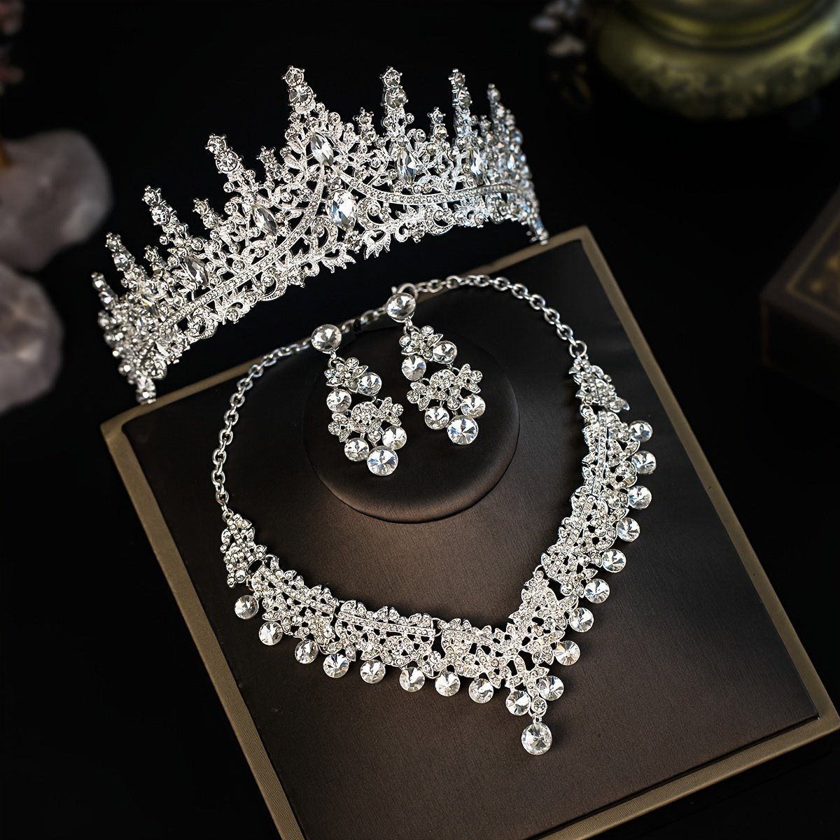 Elegant Romantic Wedding Set: Crown, Necklace, and Earrings with Crystal Details