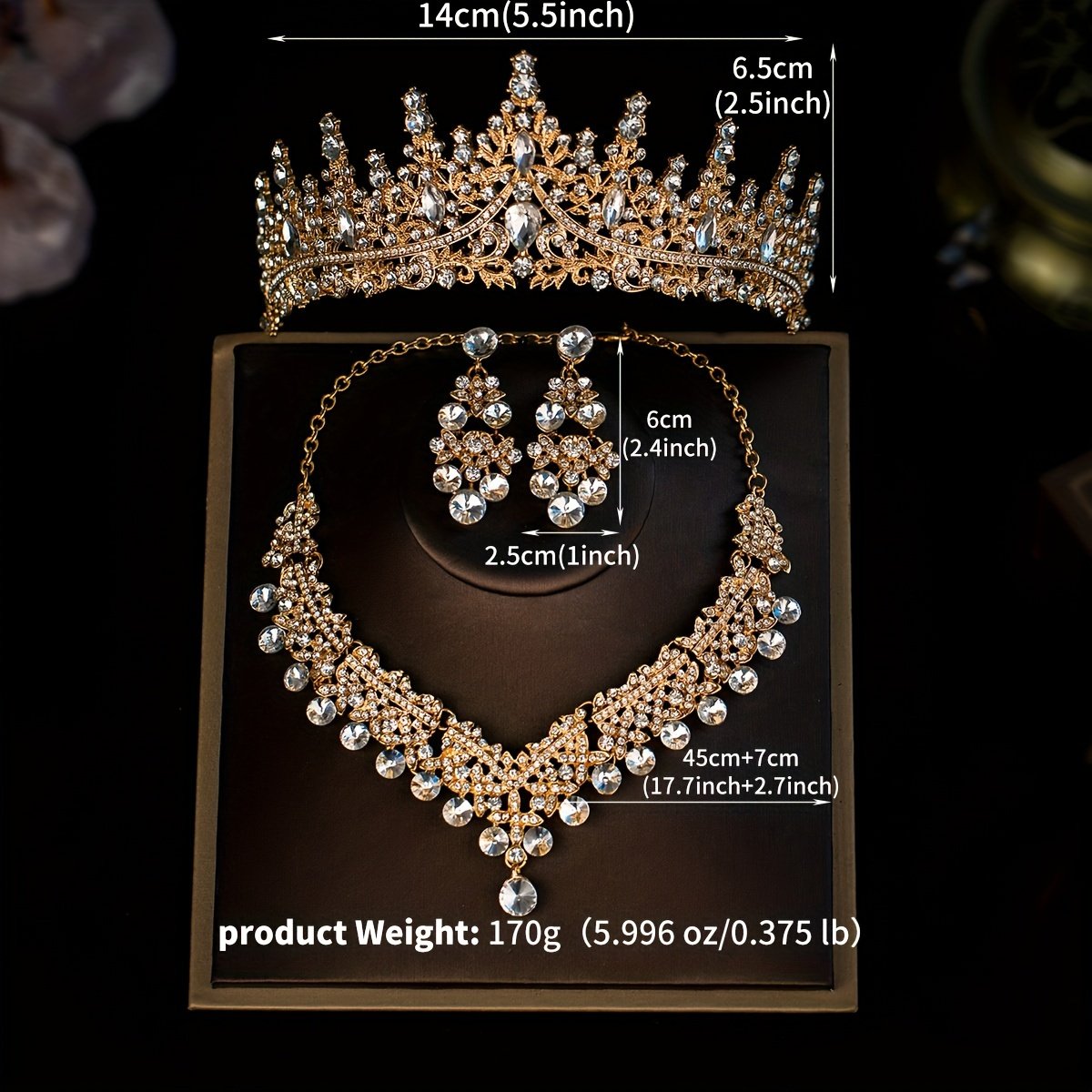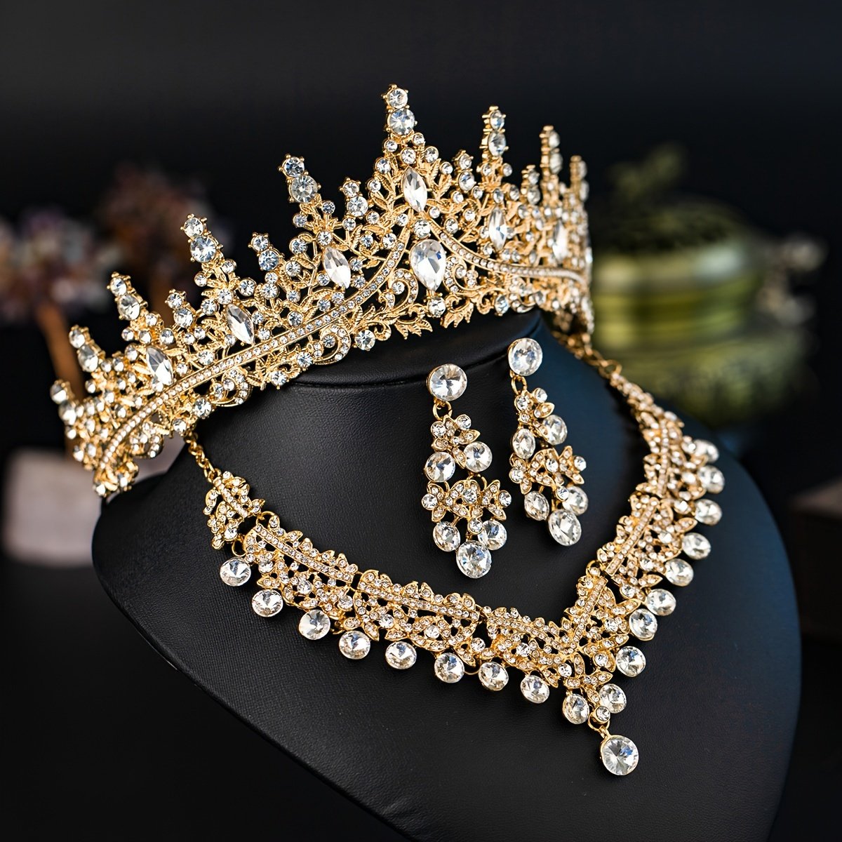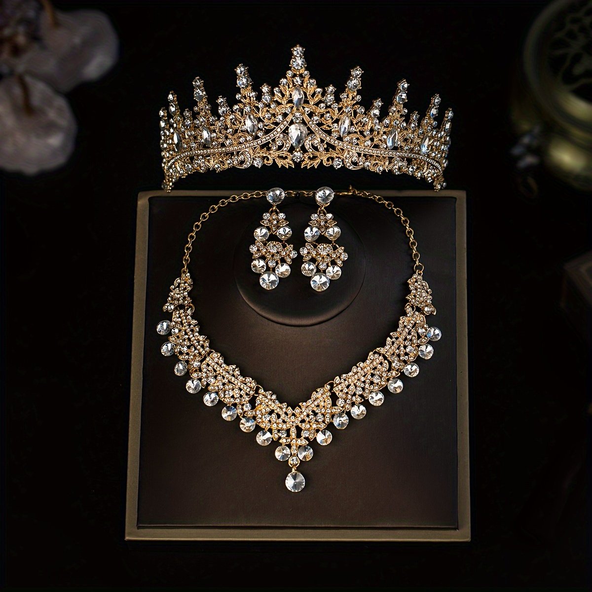 Elegant Romantic Wedding Set: Crown, Necklace, and Earrings with Crystal Details