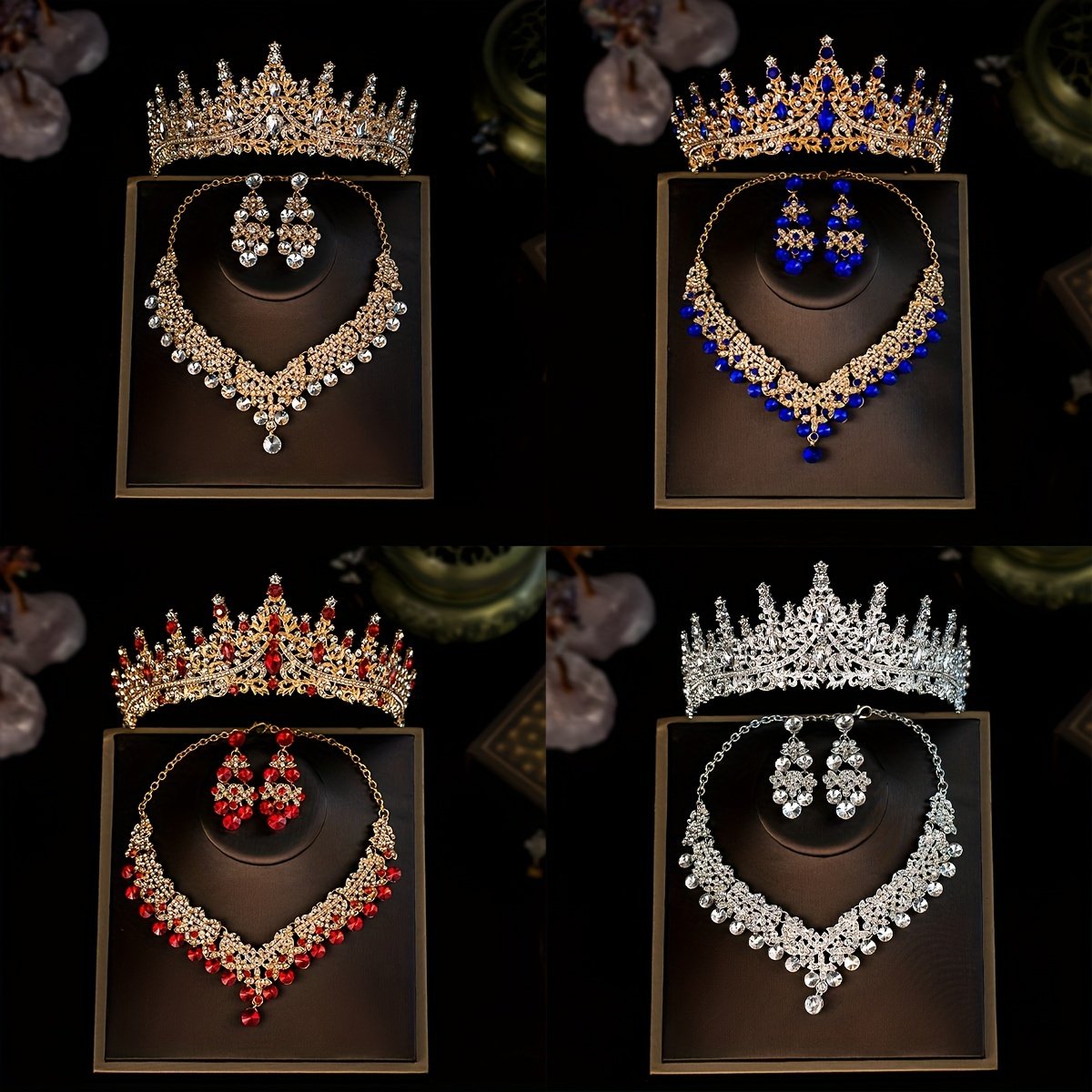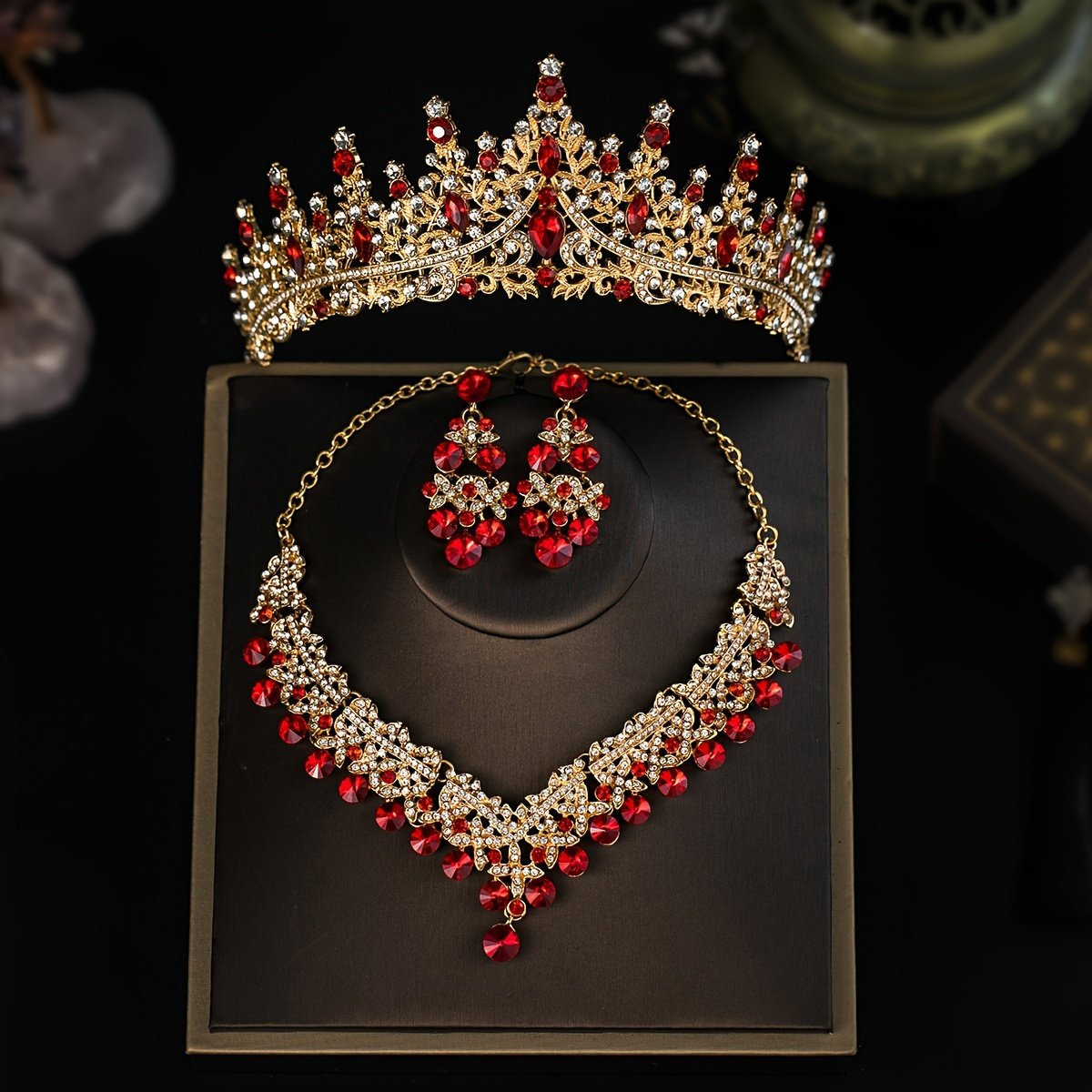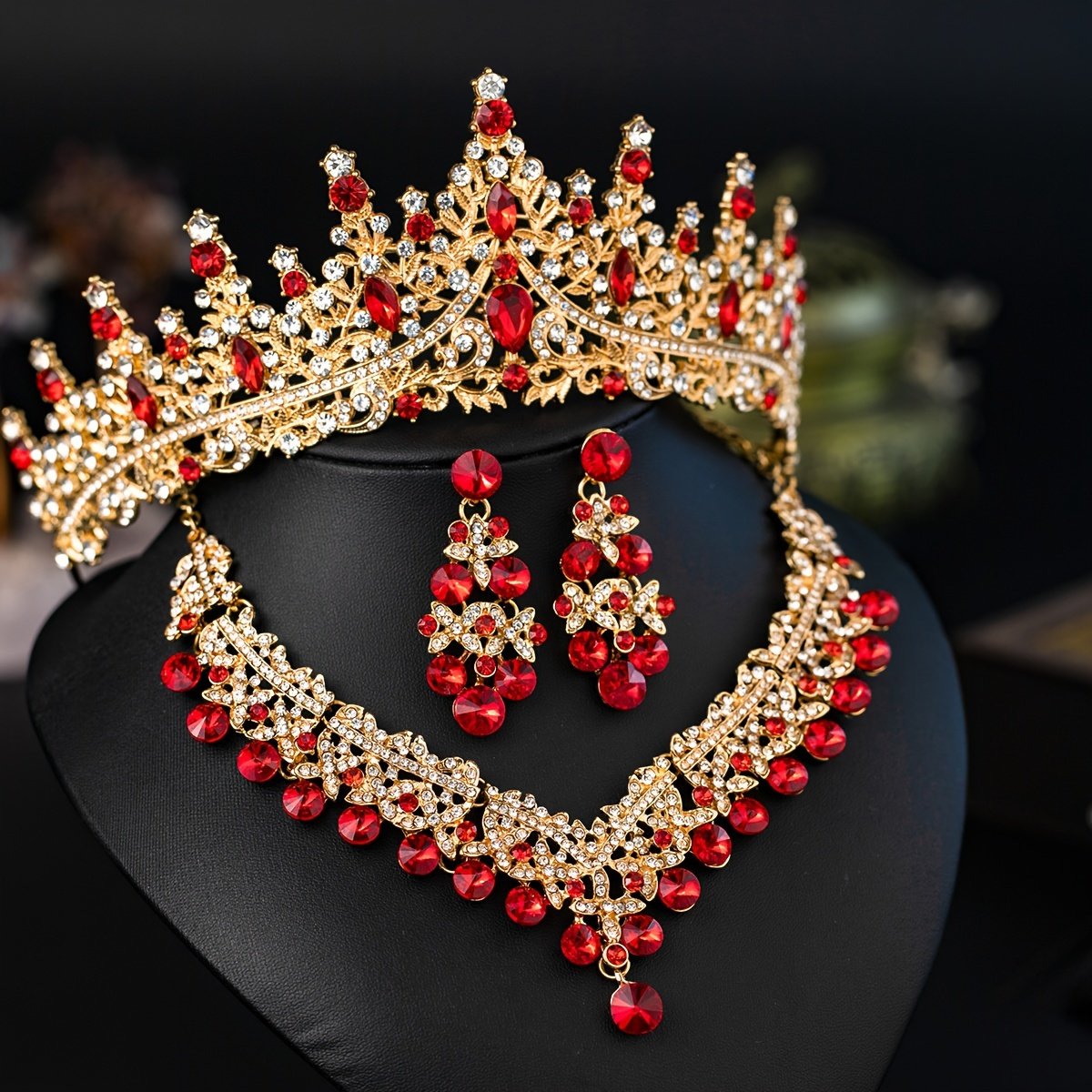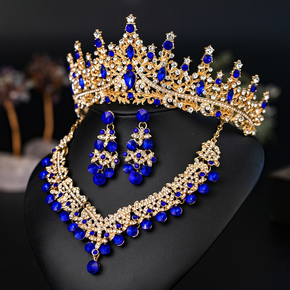 Elegant Romantic Wedding Set: Crown, Necklace, and Earrings with Crystal Details