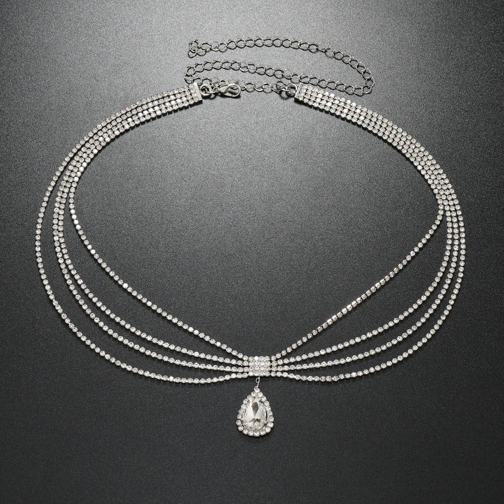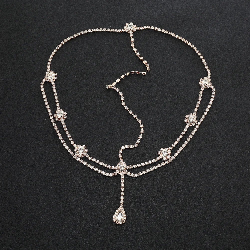 Fashion Bridal Rhinestone Hair Chain Head Jewelry For Women Multilayer Crystal