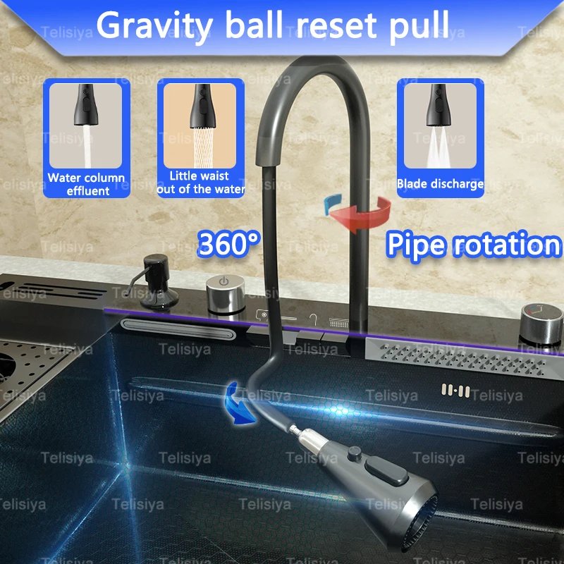 Digital Display Gun Gray Shower Set With LED Ambient Light
