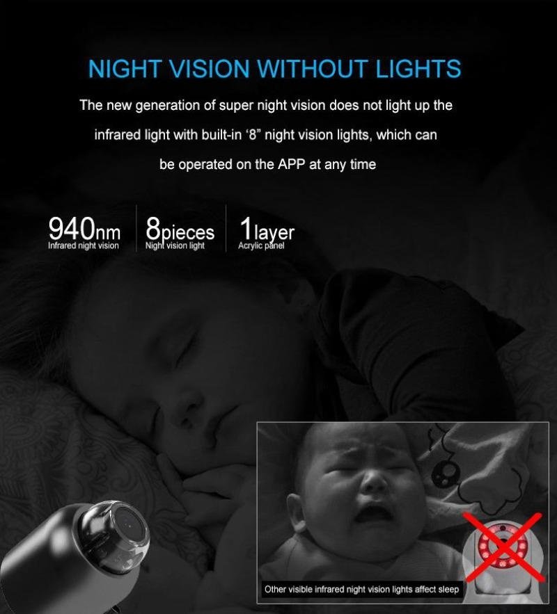 ● Built-in 8 night vision light, which can be operated on the APP at any time. Motion detection alarm ● Camera supports intelligent mobile alarm function.
