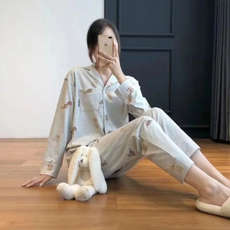 Ins Sensibility Women's Pajama Set Long Sleeve Cotton Striped Thin Style Spring Autumn Outer Wear Home Clothes Two-Piece Suit