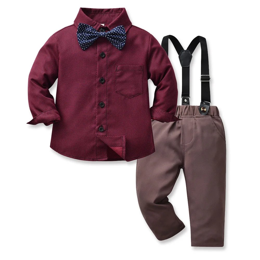 Kabeier Baby Boys Gentleman Outfit Suit Sets Toddler Shirt with Bowtie Infant Autumn Suspender Trousers Sets