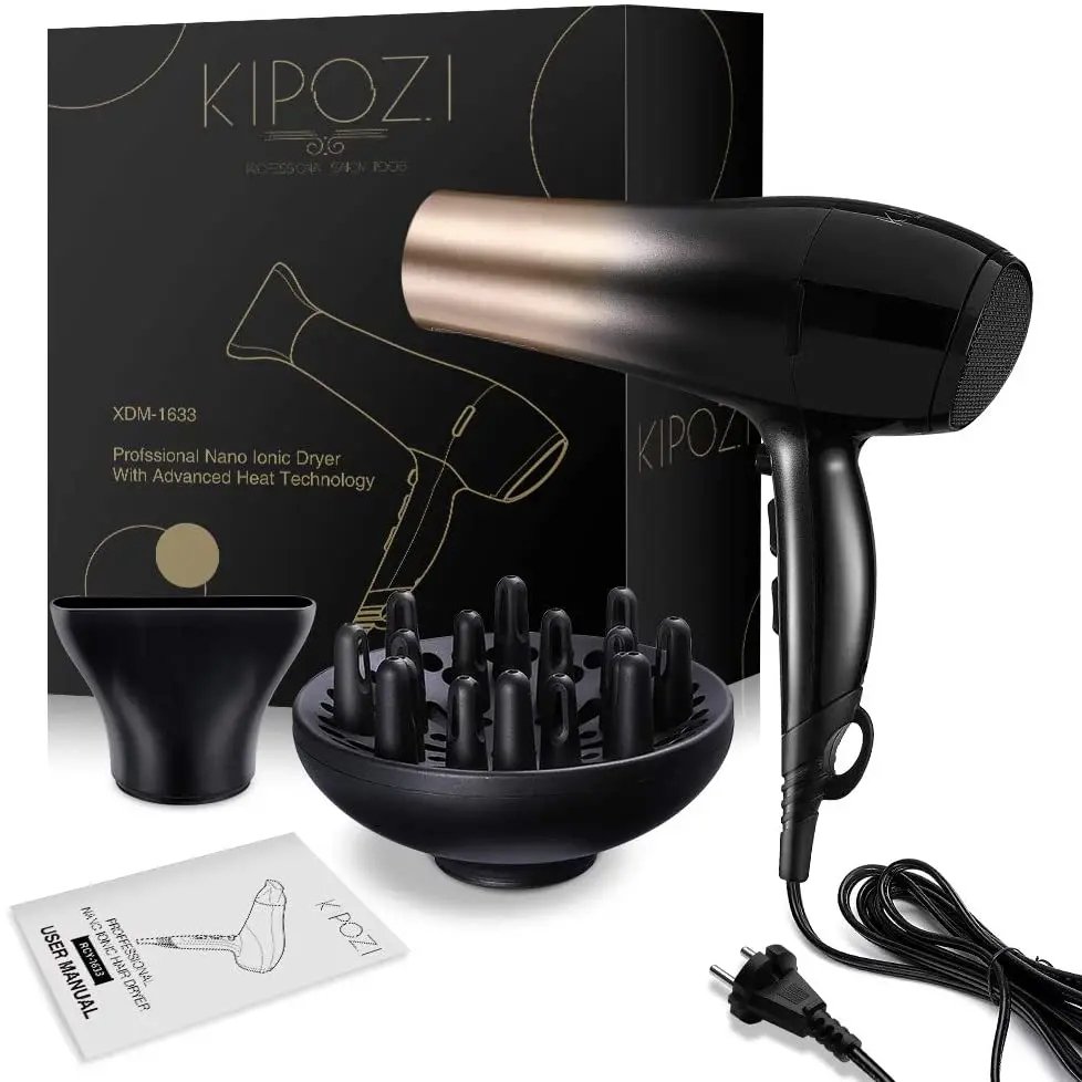 KIPOZI Hair Dryer 1875W Nano Ionic Hair Blow Dryer with DC Motor for Frizz Free Styling with Diffuser and Airflow Concentrator