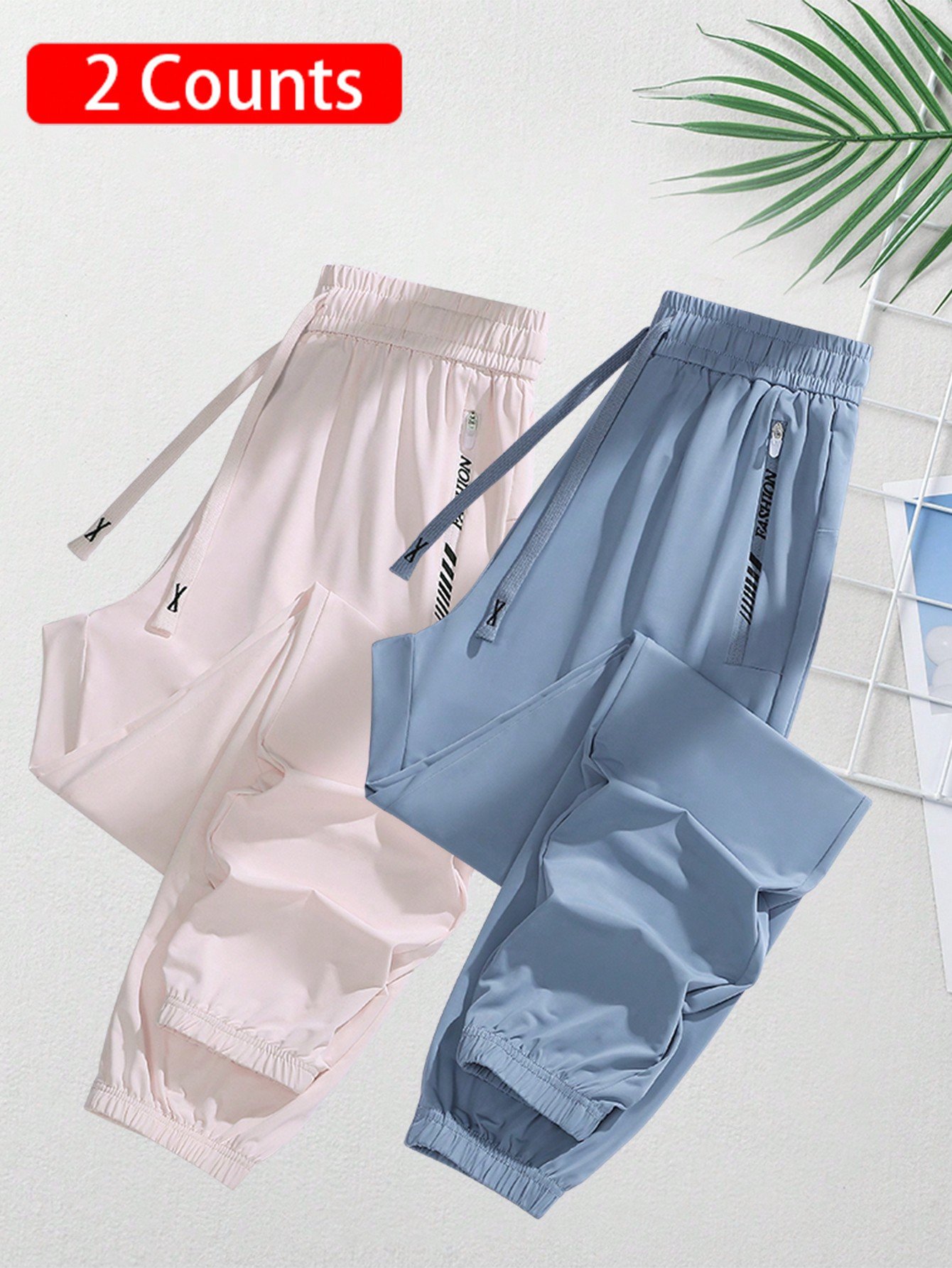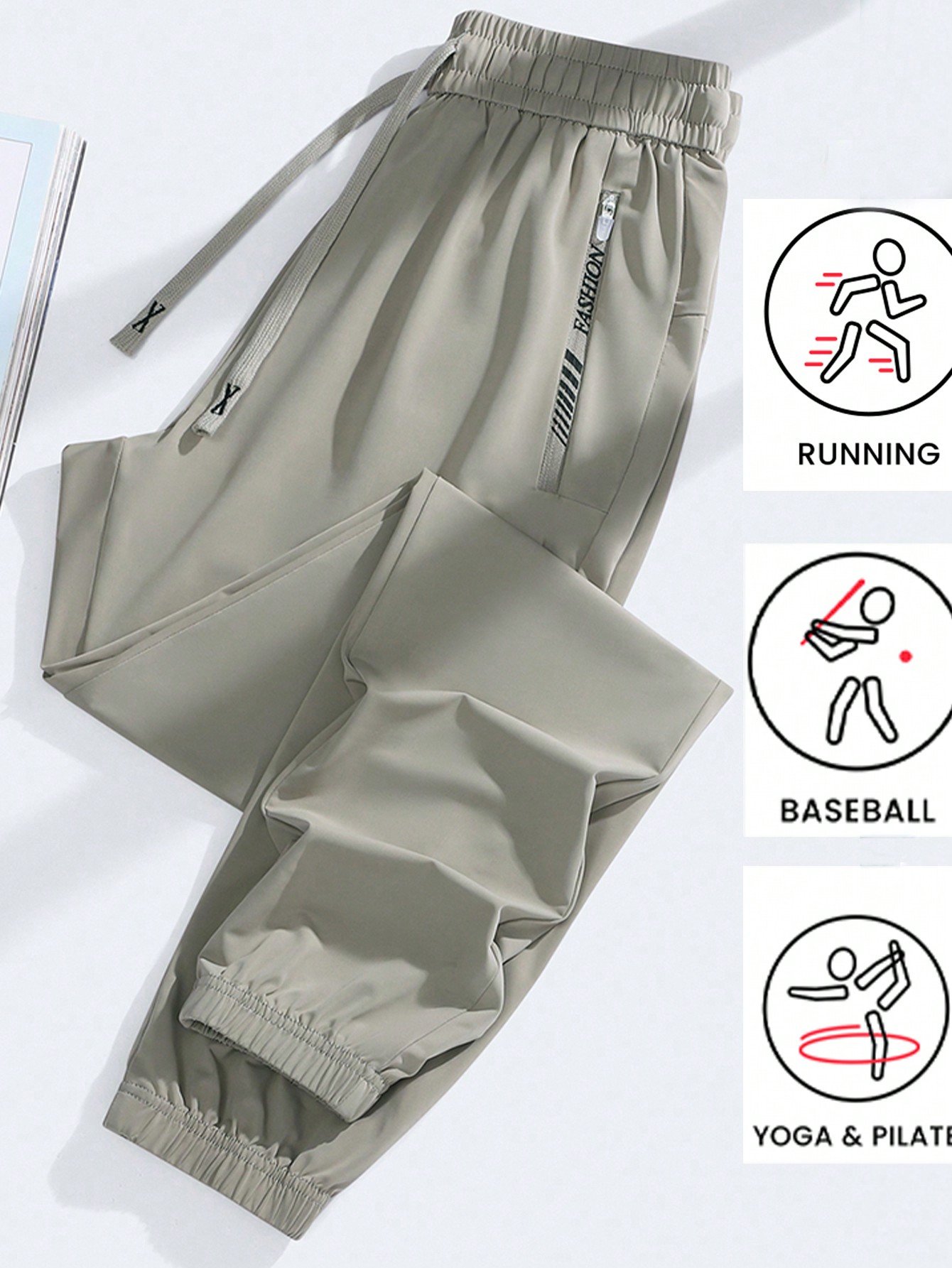 Ladies' High Elasticity Nylon Sports Pants, Summer Quick-Dry Breathable Ice Silk Moisture Wicking Simple All-Match Running Fitness Yoga Sports Pants