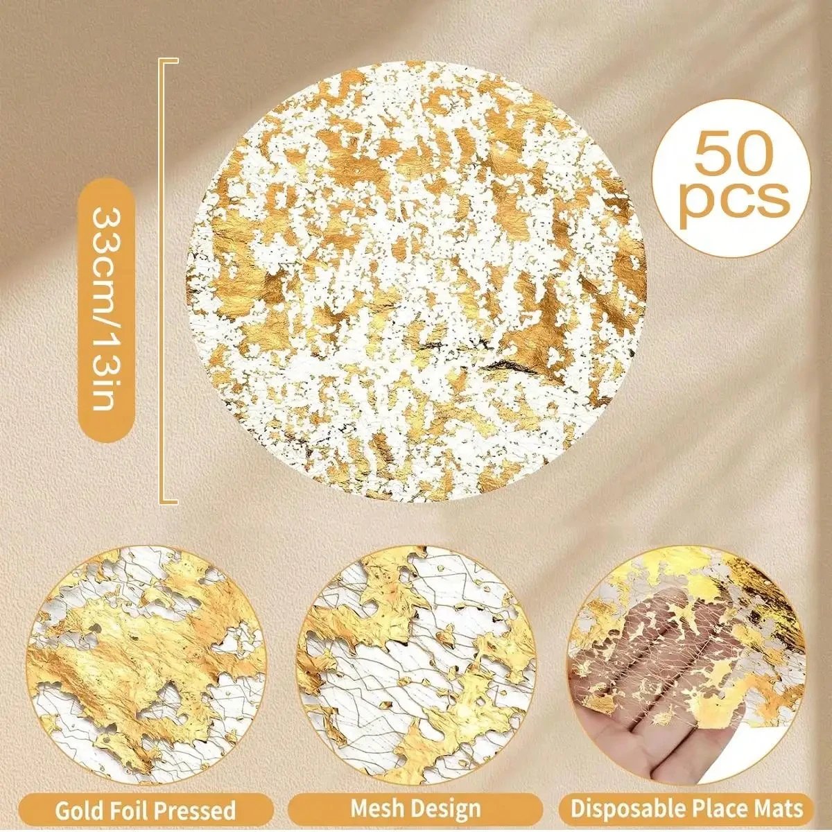 Leeseph Disposable Gold Placemats Set, 13 Inch Round Gold Foil Table Mats for Christmas Party Home Decoration Dining Table