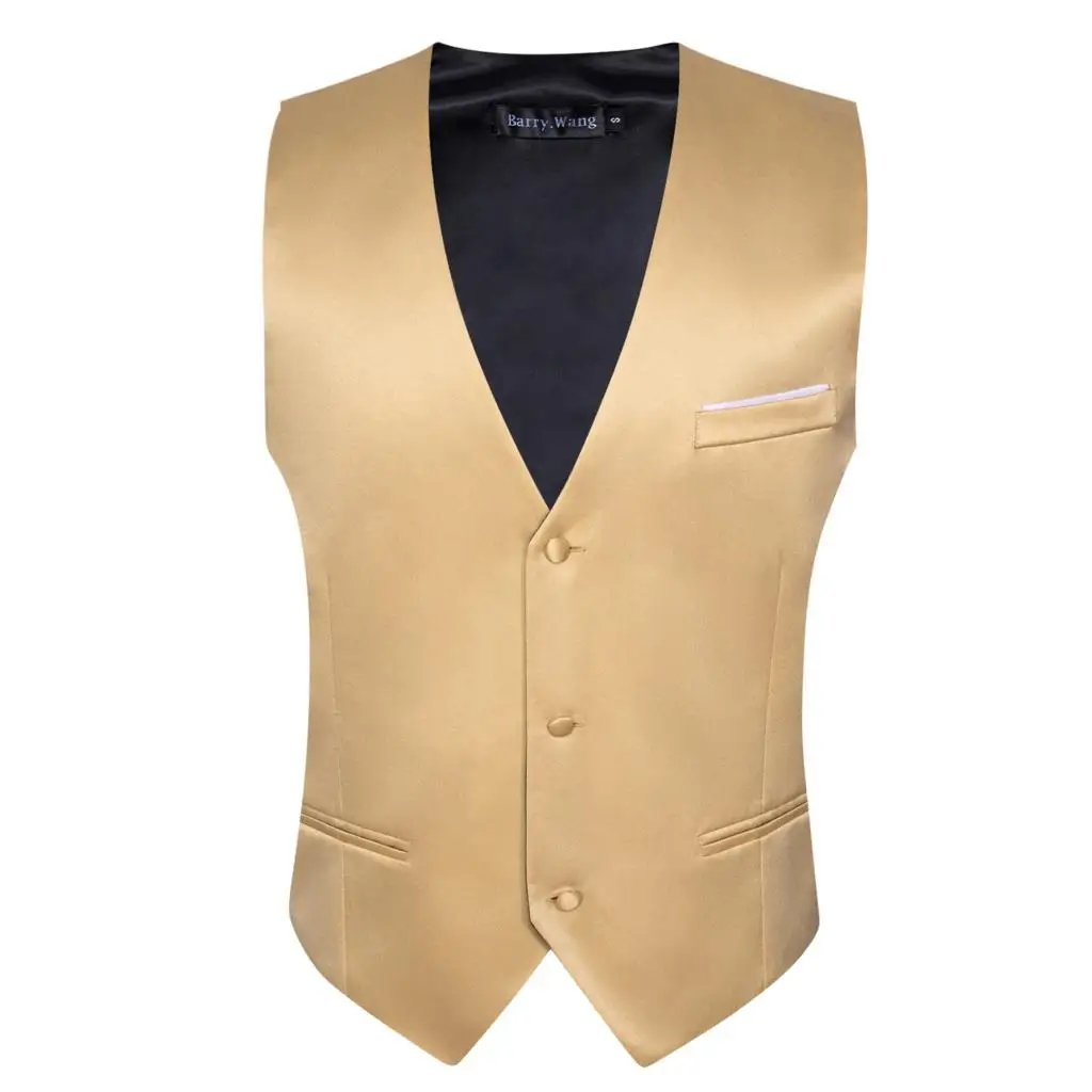 Luxury Vest for Men Gold Solid Silk Satin Waistcoat Bowtie Tie Set Sleeveless Jacket Wedding Formal Male Gilet Suit Barry Wang