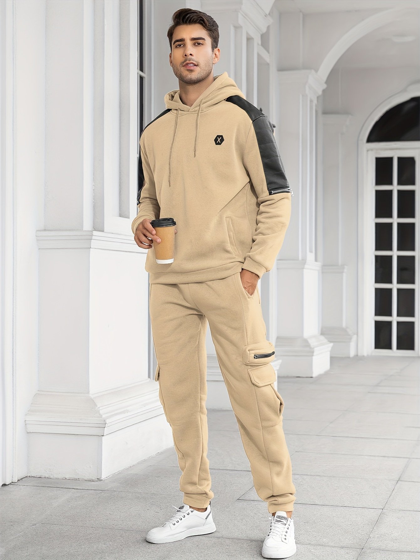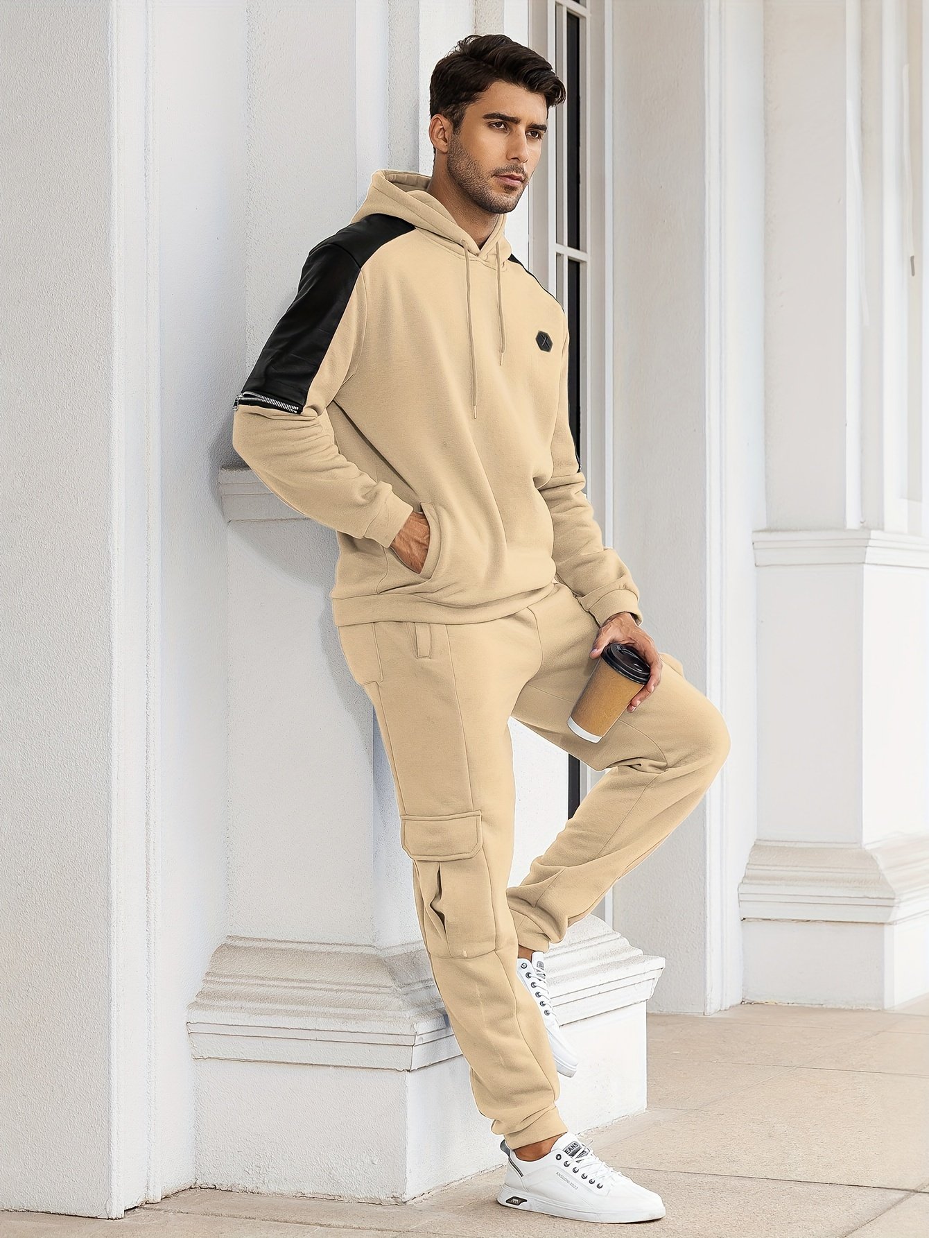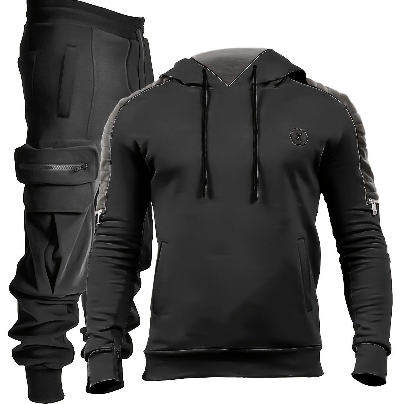 Men’s Casual 2pcs Set, High Stretch Sports Hoodie Multi Pocket