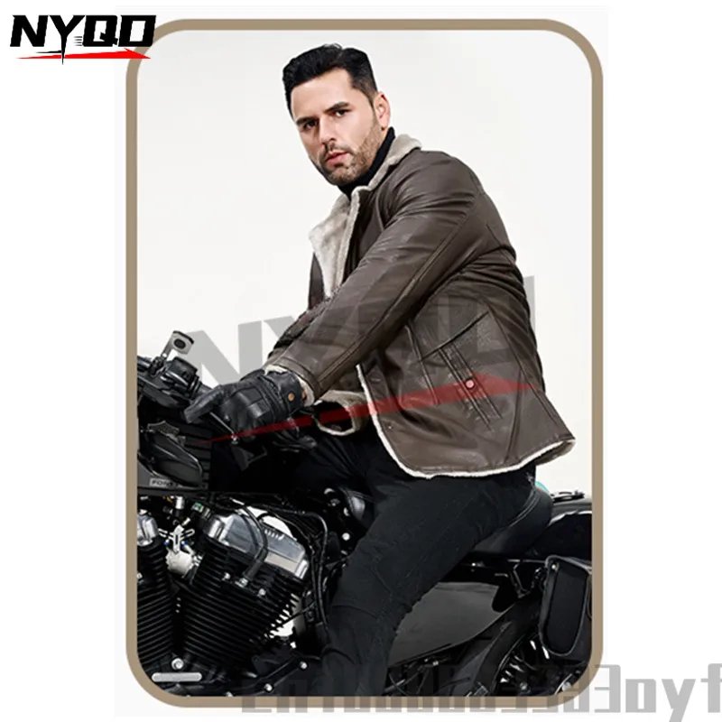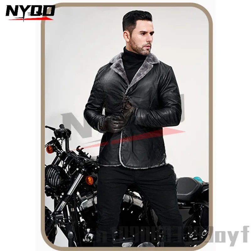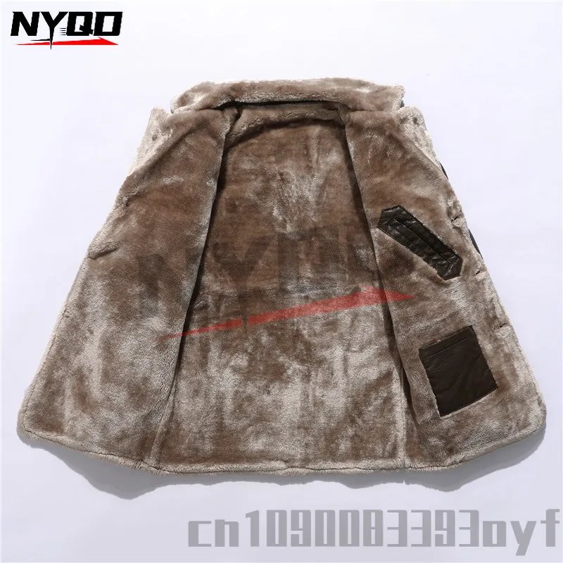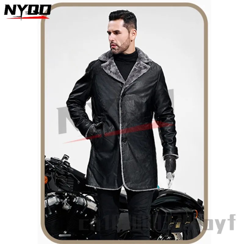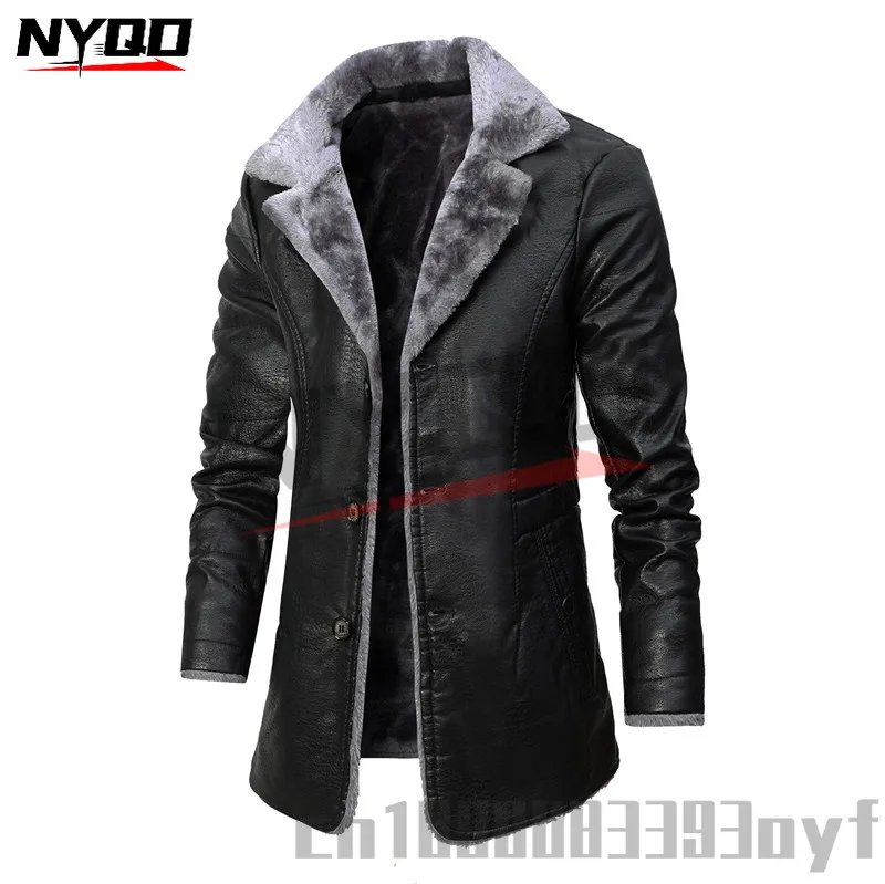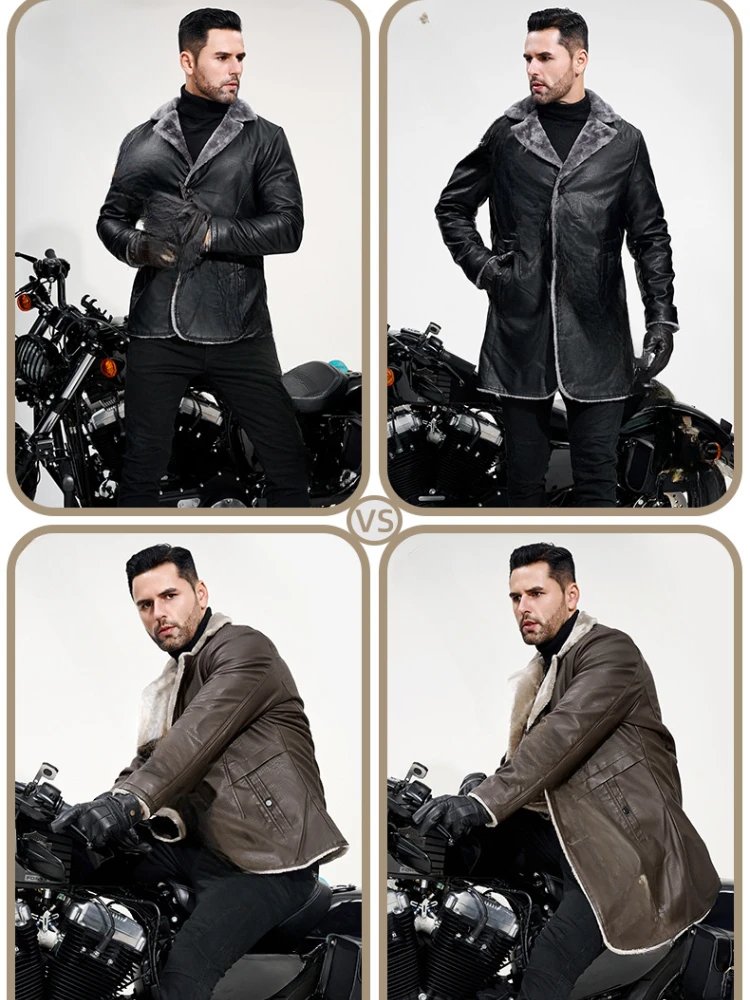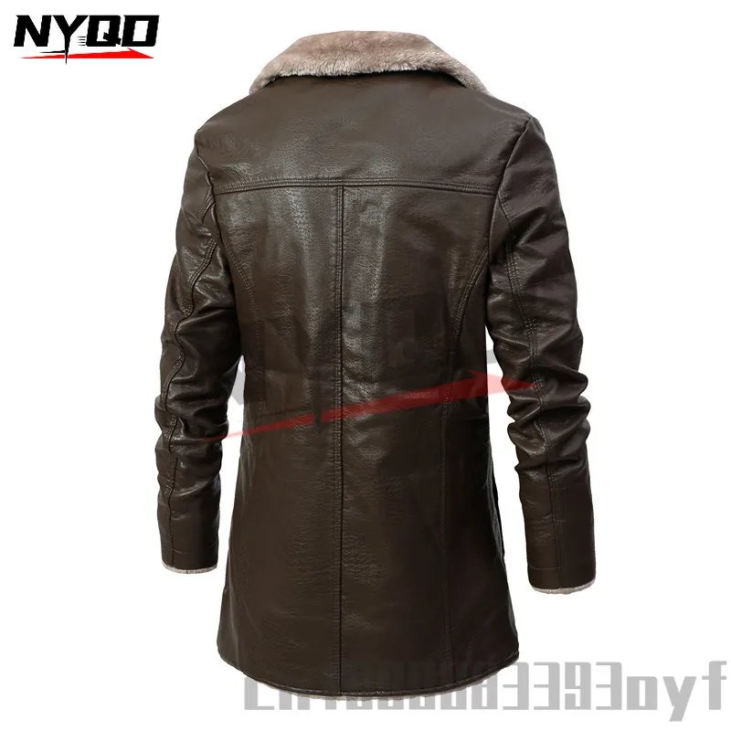 Men’s Mid-length Leather Jacket Autumn and Winter European Size
