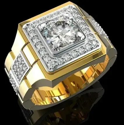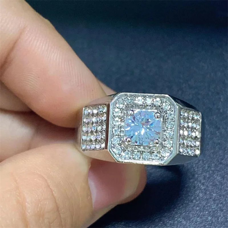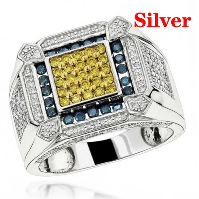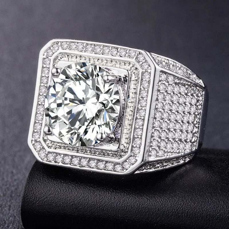 Milangirl Big Hip Hop Rhinestone Men Out Bling Square Ring Pave Setting