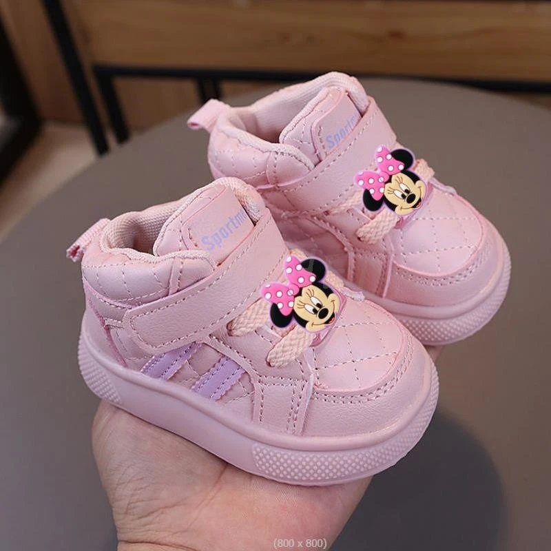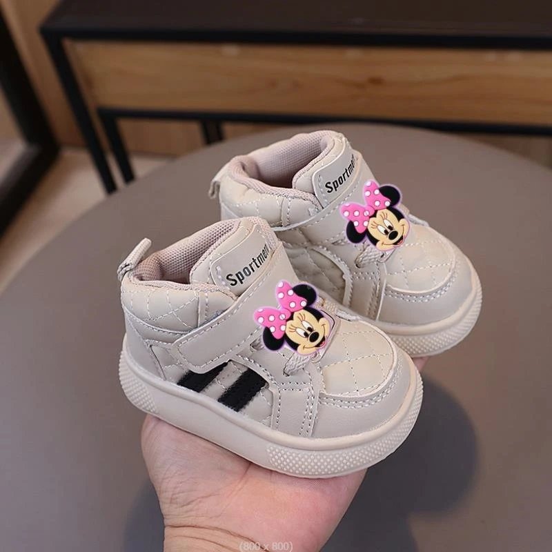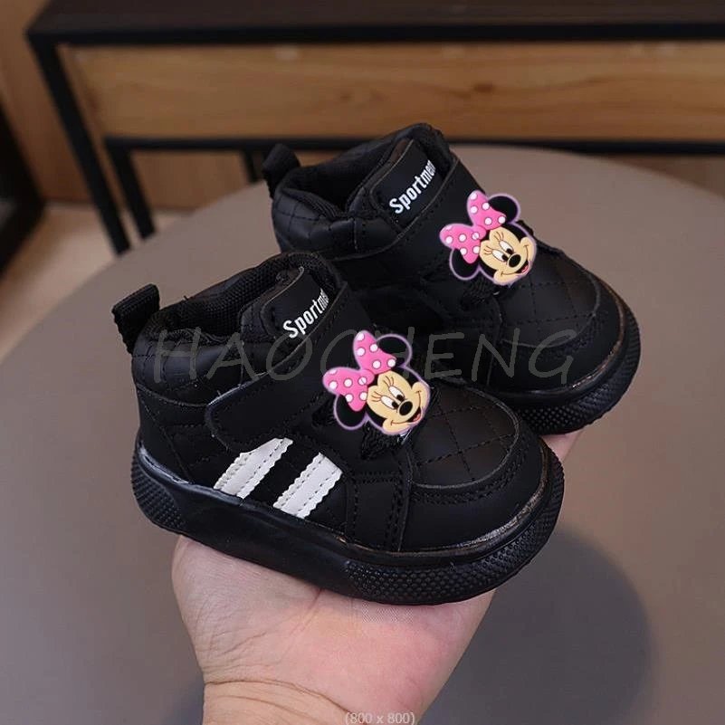 MINISO Mickey Minnie Fashion Kids Sneakers High Top Breathable Casual Shoes Girls Non-slip Boys Outdoors Toddler Board Shoes