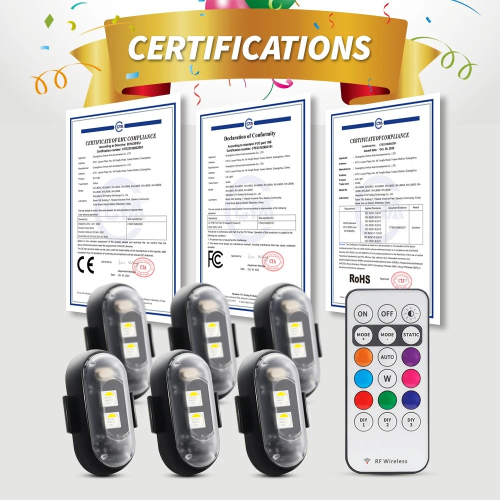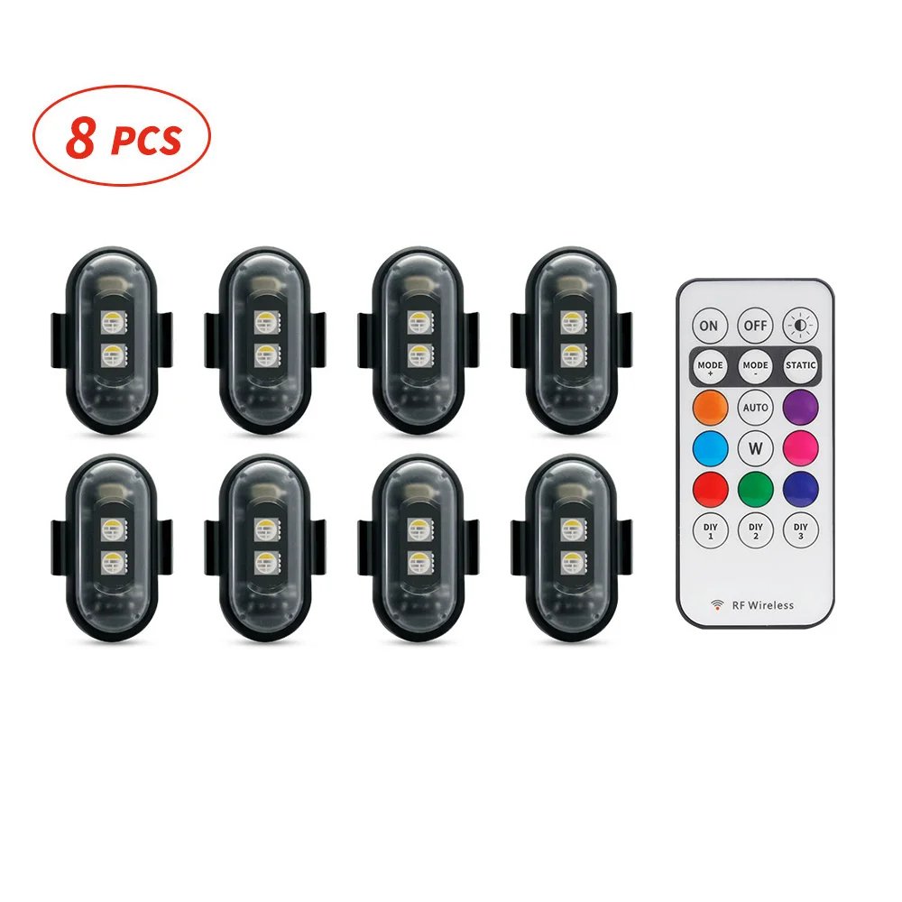 Motorcycle LED RGB Warning Light Universal Mini Signal Light Drone With Controller Strobe Light 7 Color Indicator Safety Lights
