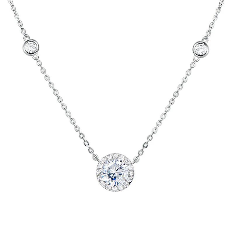 New 925 Sterling Silver Round Zirconia Necklace Delicate Charm Heart Pendant