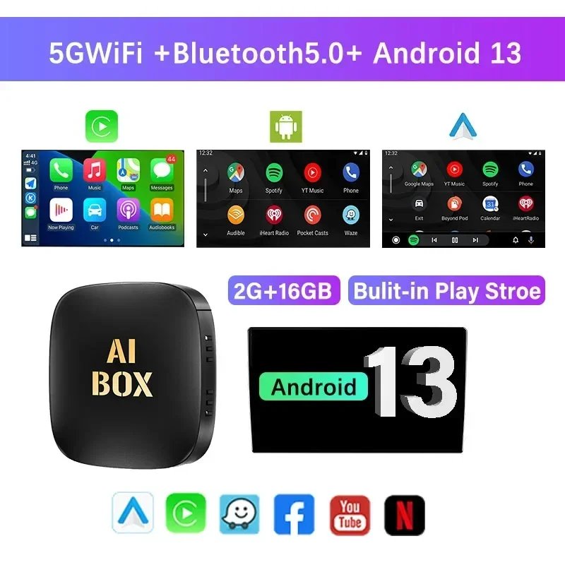 New Android 13 Wireless CarPlay Wireless Android Auto Adapter for Youtube Netflix Video Playback Car Accessories Smart Ai Box