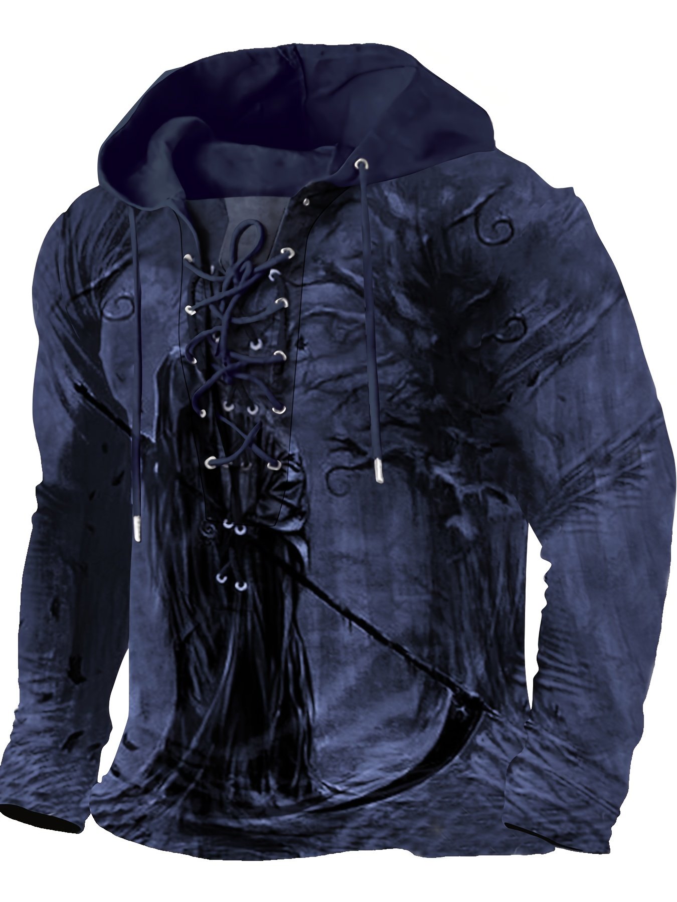 Reaper And Tree Pattern Hooded Long Sleeve Lace Up Sweatshirt