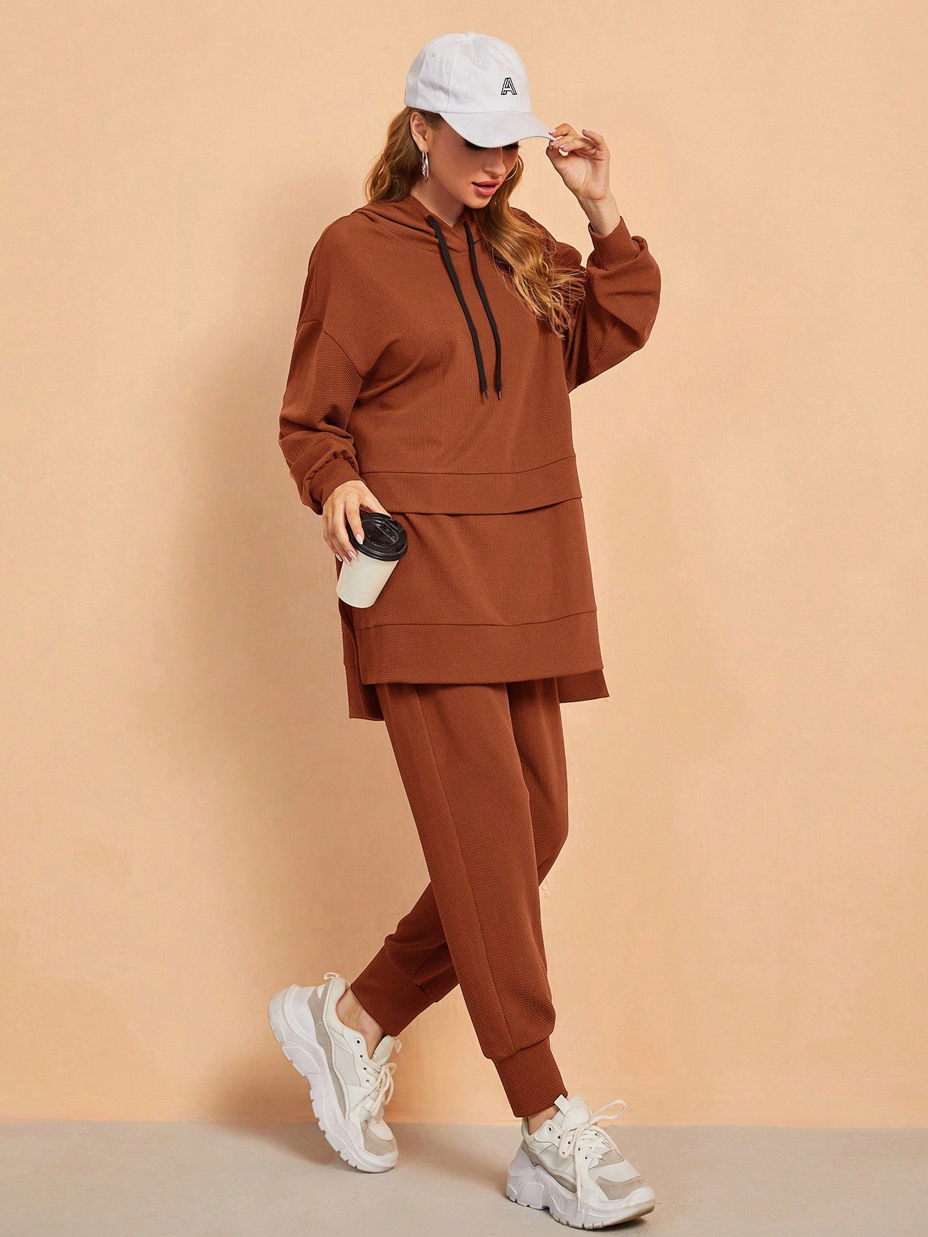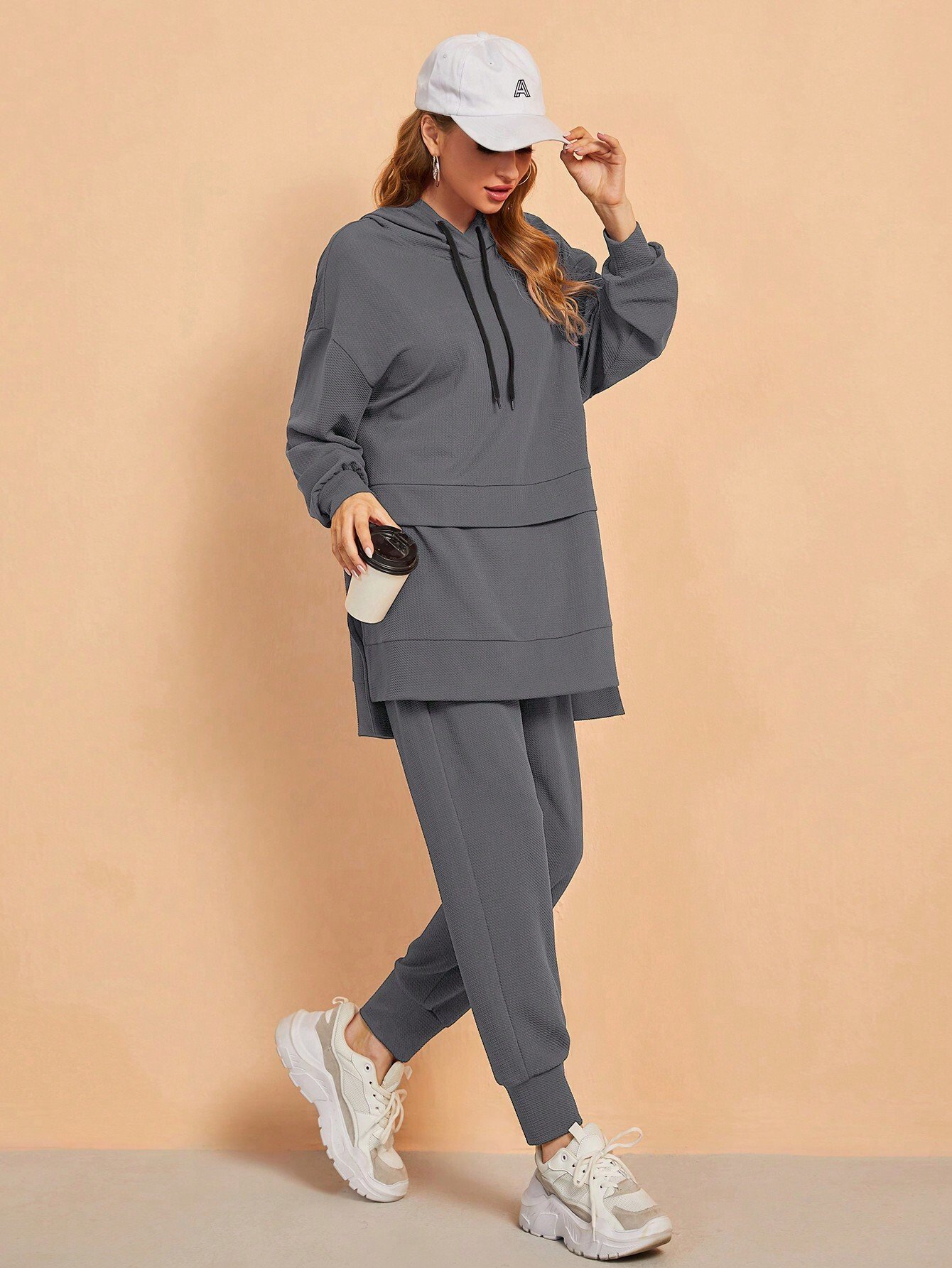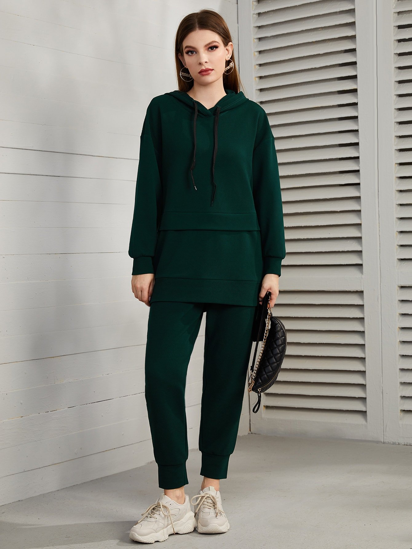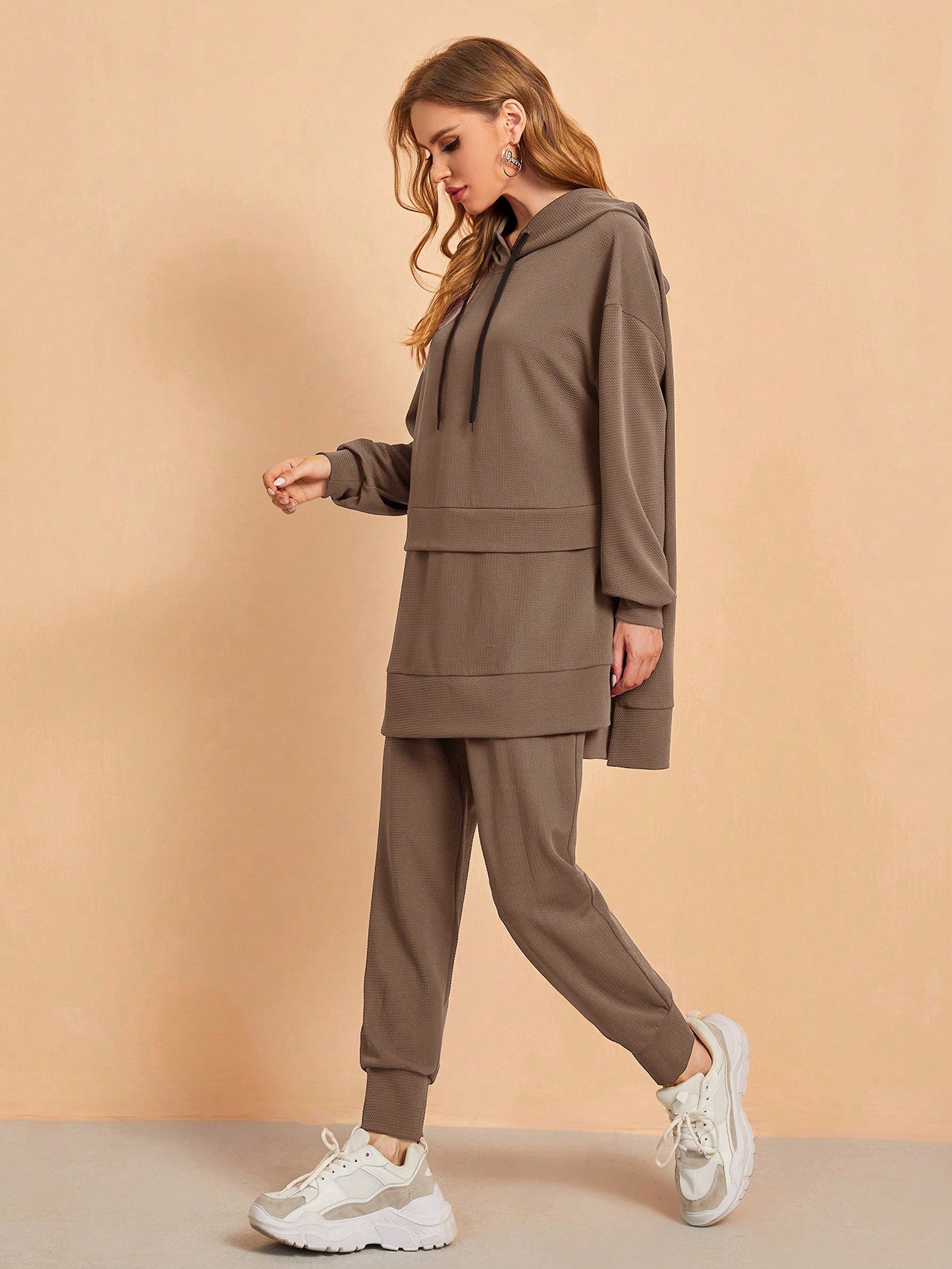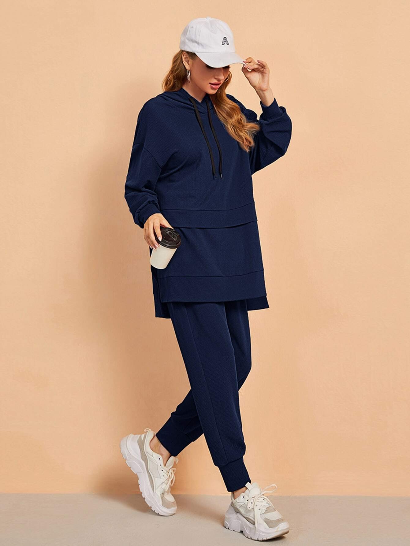 SHEIN Mulvari 2pcs/Set Women Casual Simple Solid Color Sports Hoodie And Drawstring Waist Pants, Loose Fit For Autumn 2 Piece Set