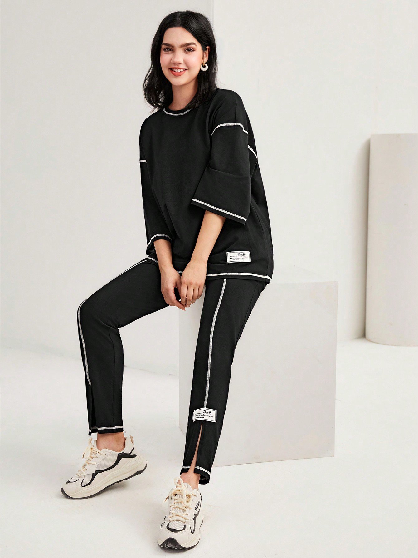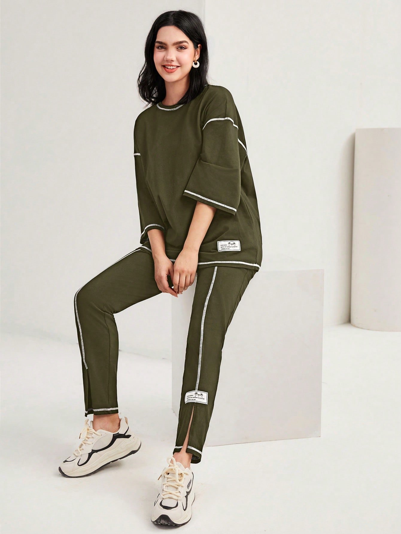 Be the first to review “SHEIN Mulvari Burgundy Red Color-Block Drop Shoulder Crew Neck Top And Pants Set 2 Piece Set”