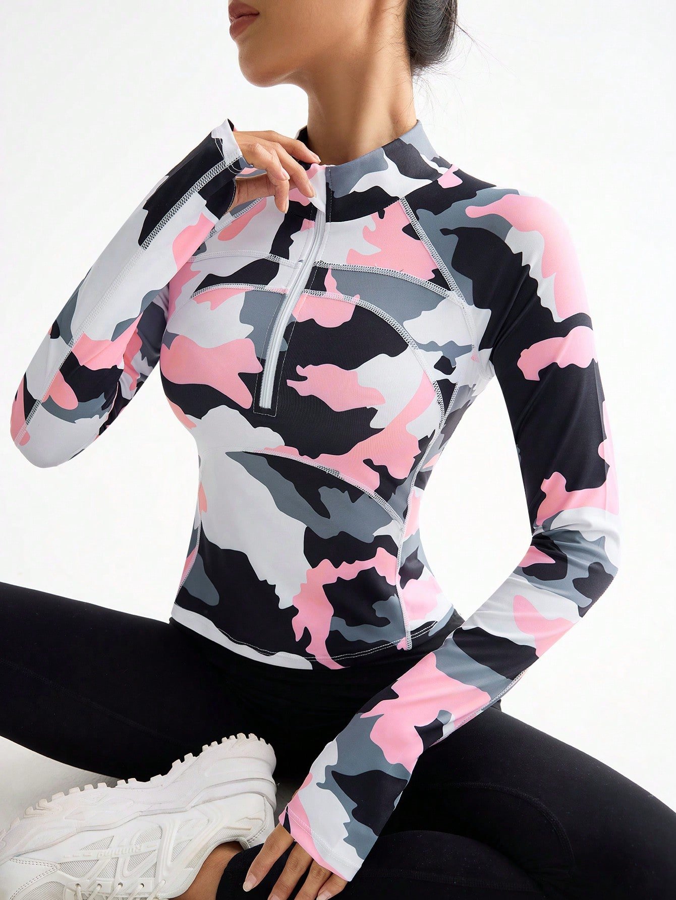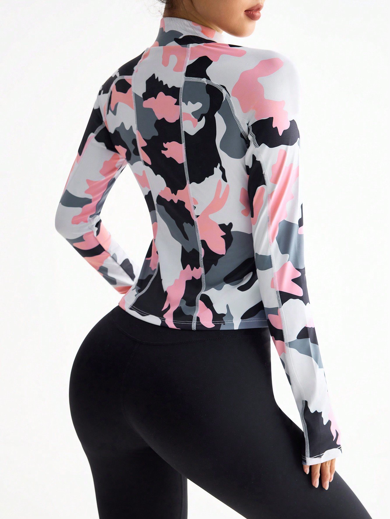 Be the first to review “SHEIN Sport Studio Fitted Stand Collar Half Zip Camo Print Pink Sports Sweatshirt For Yoga”