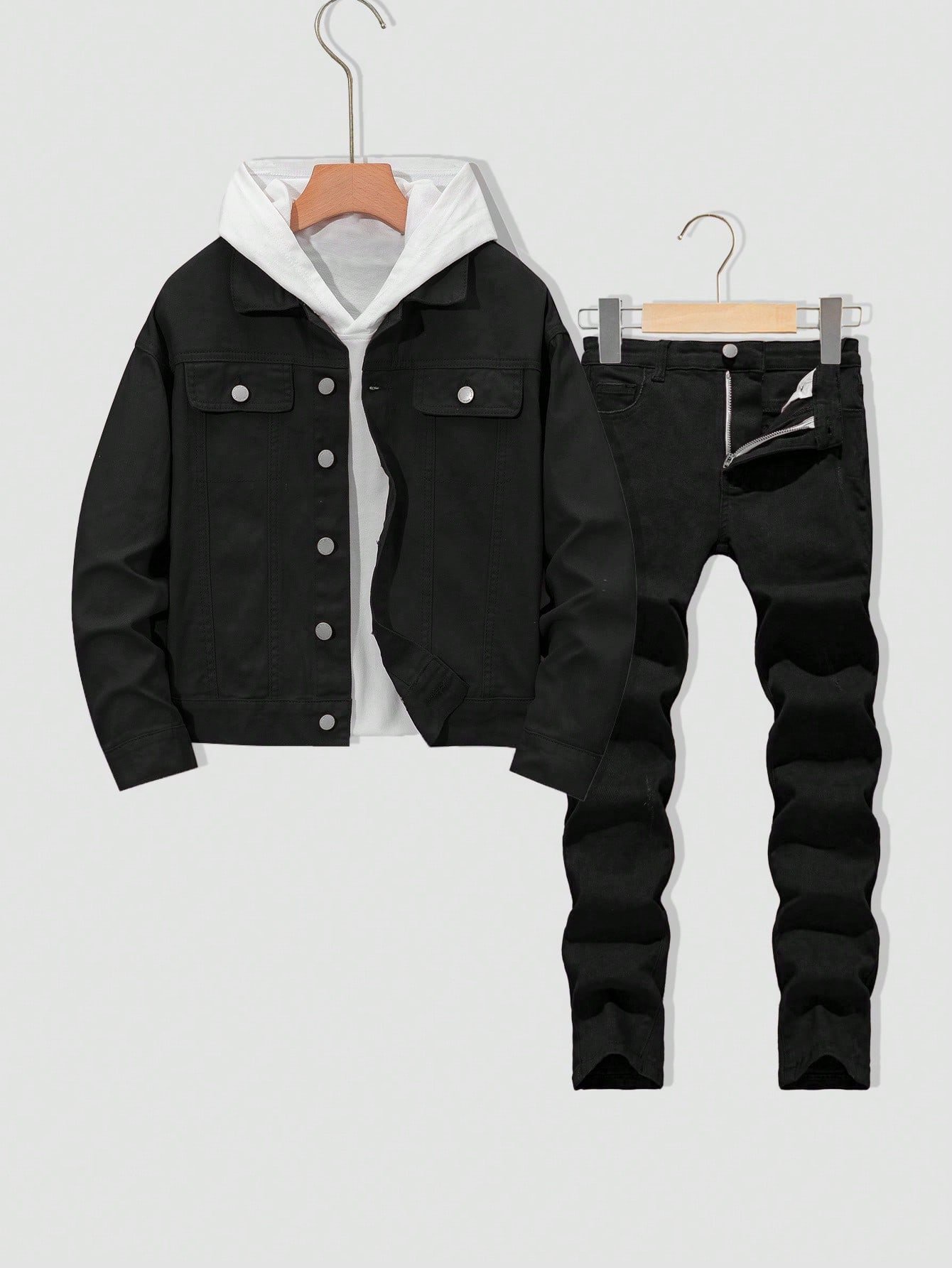 SHEIN Tween Boy Fashion Casual Black Comfortable Boys Thanksgiving Outfit With Elastic Skinny Jeans For Boys Costume Dailywear And Fall/Winter Kids Clothes This Product Is A Single Item And Does Not Include Denim Jackets And Other Jackets
