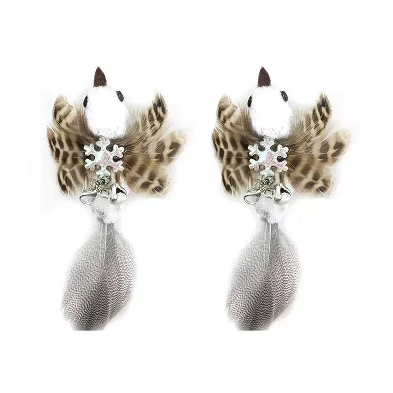 Simulation Bird Interactive Funny Cat Stick Toy Furry Feather Bird With Bell Sucker Cat Stick Toy Kitten Playing Pet Accessories