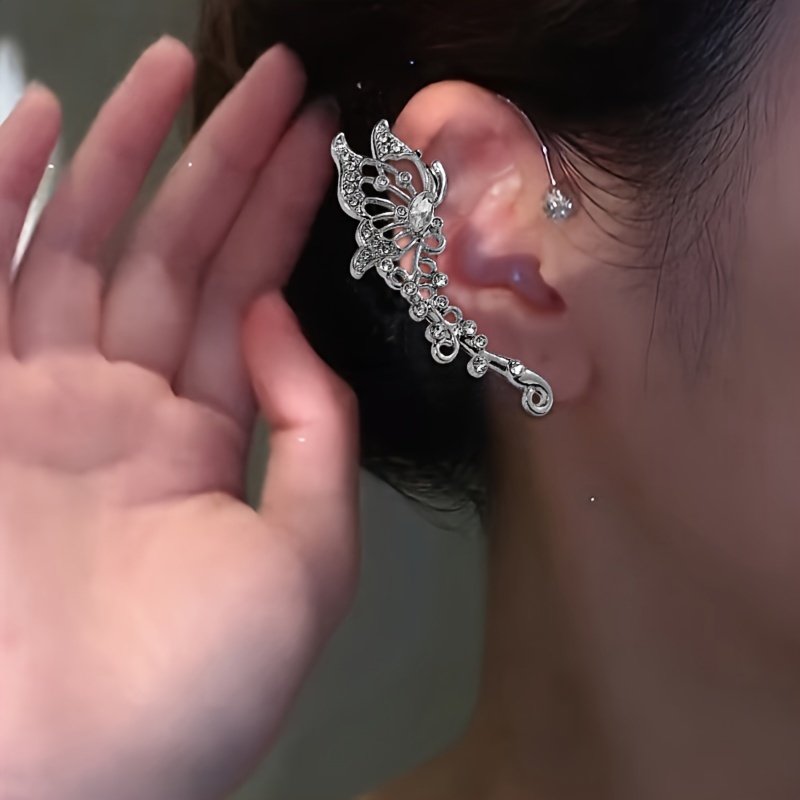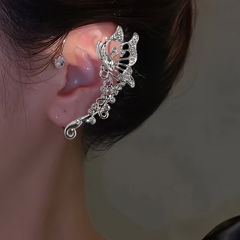 Piece Exquisite Butterfly Design Full Shiny Rhinestone Inlaid Ear Wrap Elegant