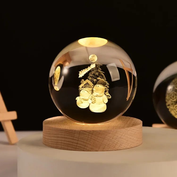 Starry Sky Astronaut Crystal Ball Glowing Wooden Base Ornament Will Shine Glass Ball 3D Interior Carving Galaxy Decoration