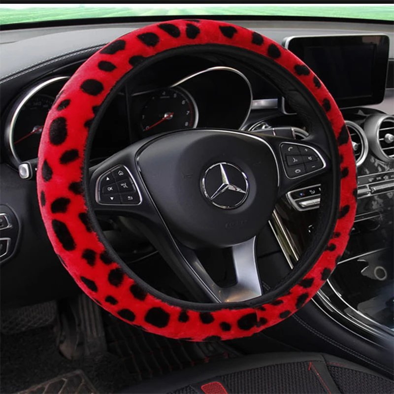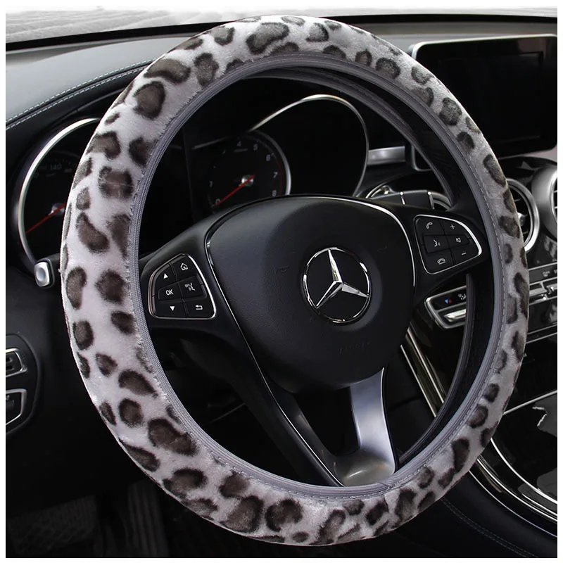 Universal Steering-wheel Plush Leopard Car Steering Wheel Covers Winter fur Warm and soft Car Interior Accessories