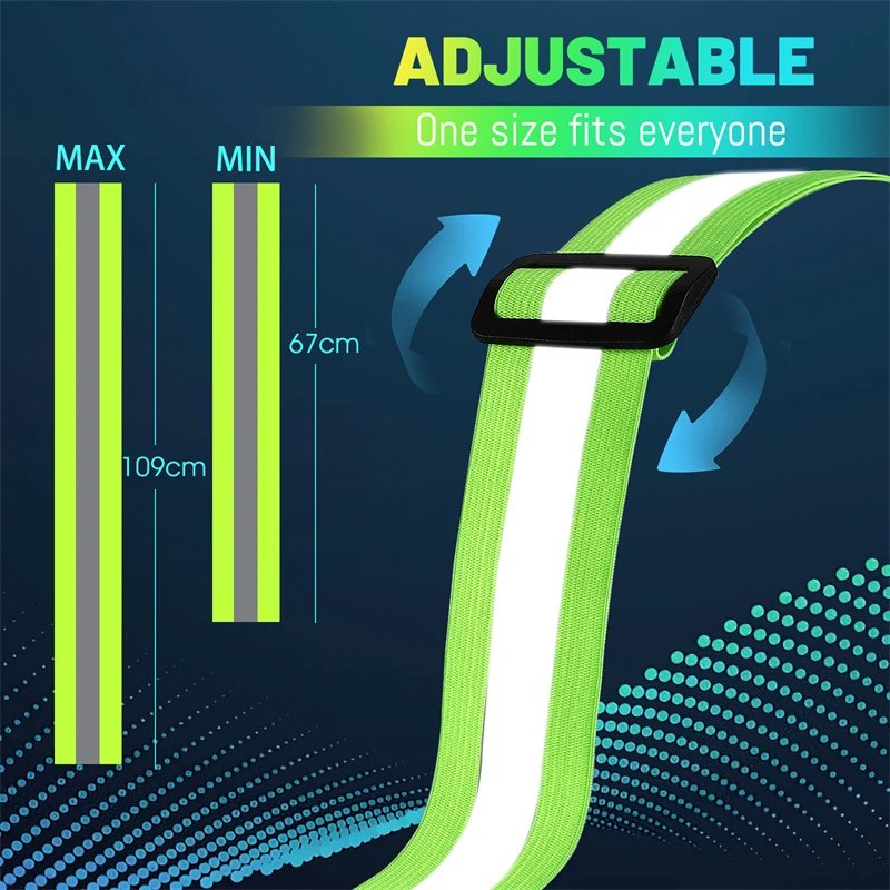 • Features : 360° Reflective,Adjustable Elastic Strips,Front 4 White LED,Back 4 Red LED