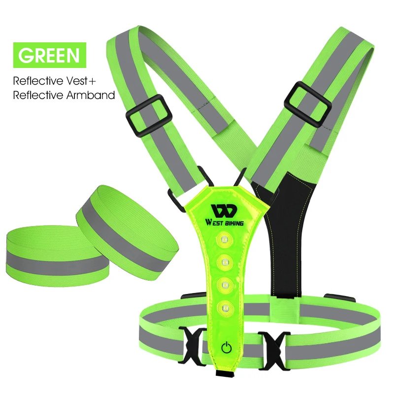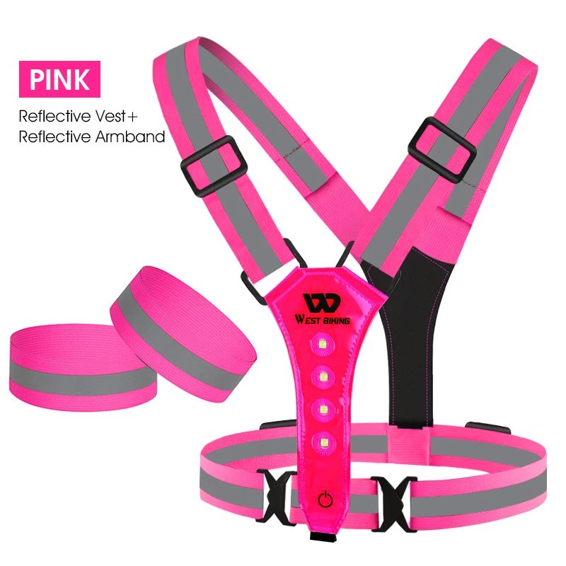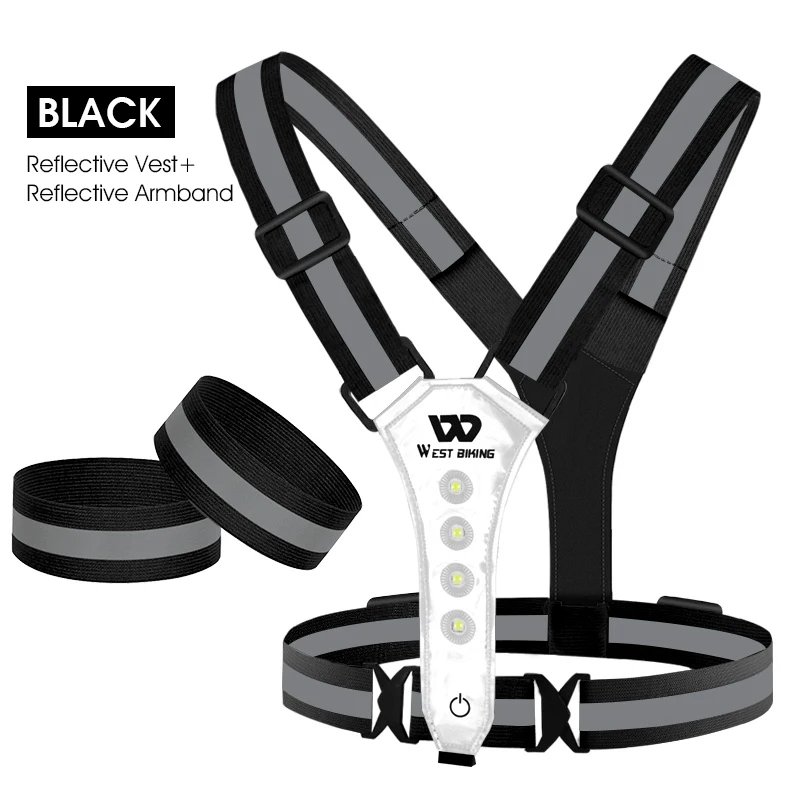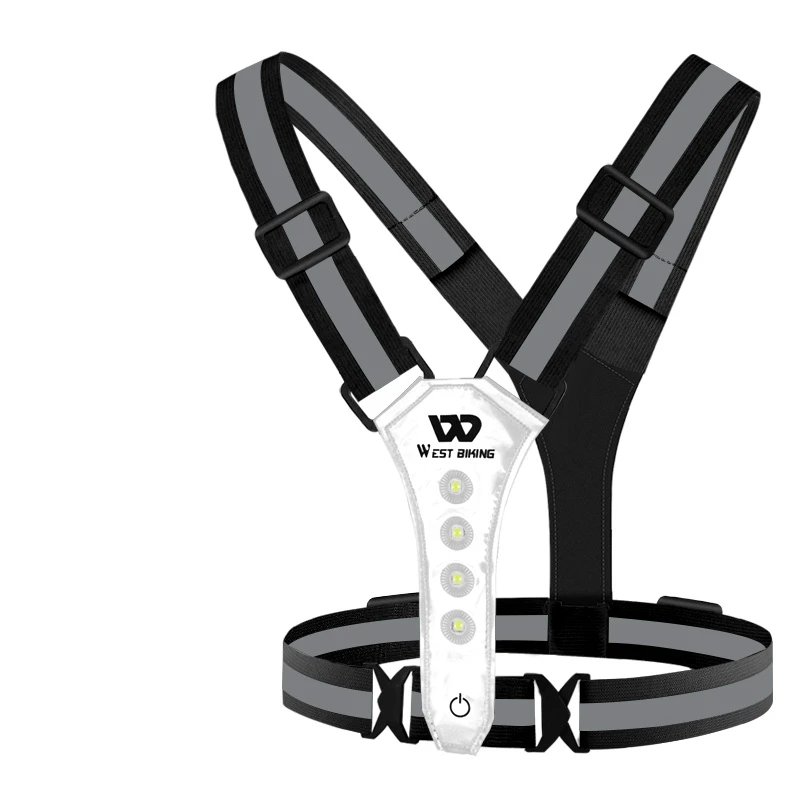 WEST BIKING Running Light Reflective Vest LED Chest Lamp USB Charge Warning Light Belt Night Working Hiking Fishing Cycling Vest