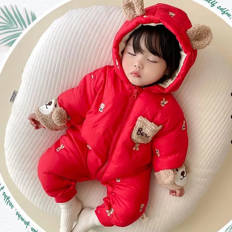 Winter Newborn Baby Romper Thicken Cotton Jumpsuit Infant Onesie Fleece Lining Hooded Rompers for Boy Girl Clothes Kids Outfit
