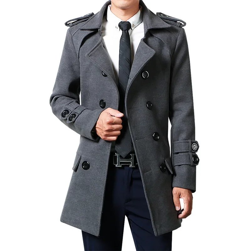 Winter Woolen Overcoat Men Medium-length Fleece-lined